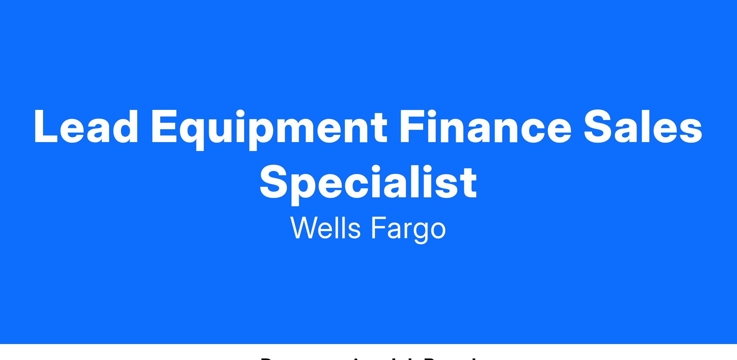 Wells Fargo is seeking a territory manager for Wells Fargo's Construction Equipment Finance group. This is a customer facing sales role.