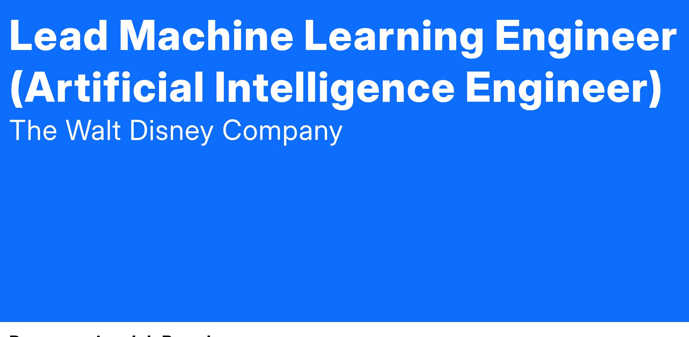 Lead Machine Learning Engineer (Artificial Intelligence Engineer)Req ID: