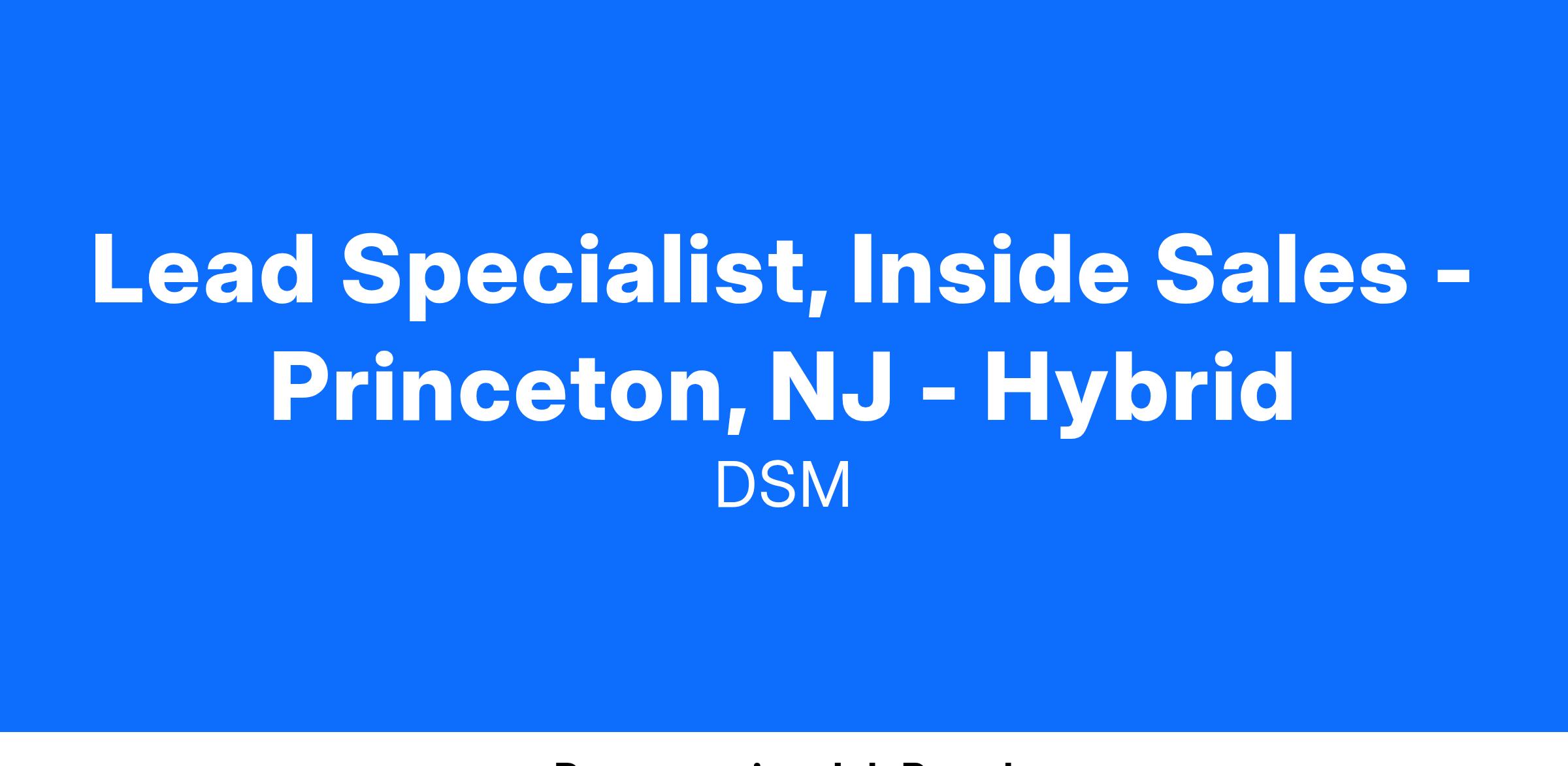 Lead Specialist, Inside Sales