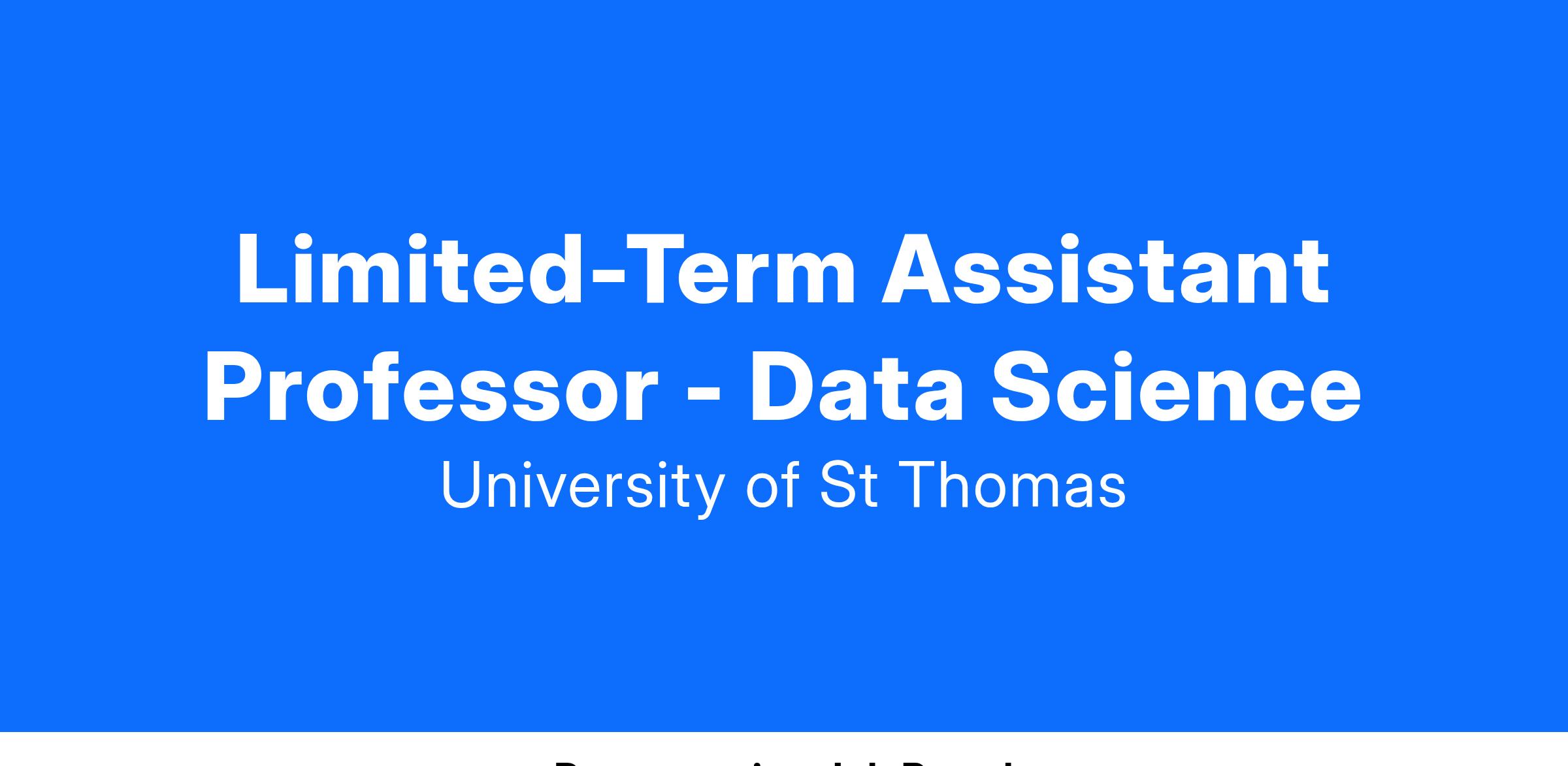 The University of St. Thomas’s Department of Computer and Information Sciences (CISC) invites applications for a Limited-Term Assistant Professor position in Data Science. The appointment will begin in Fall 2025 and is renewable for up to five years. The search committee welcomes applicants with expertise in any area of data science. We are seeking outstanding candidates who are dedicated to innovative and inclusive undergraduate teaching, creating a productive research agenda, and contributing to the sense of community and support among students, staff, and faculty.