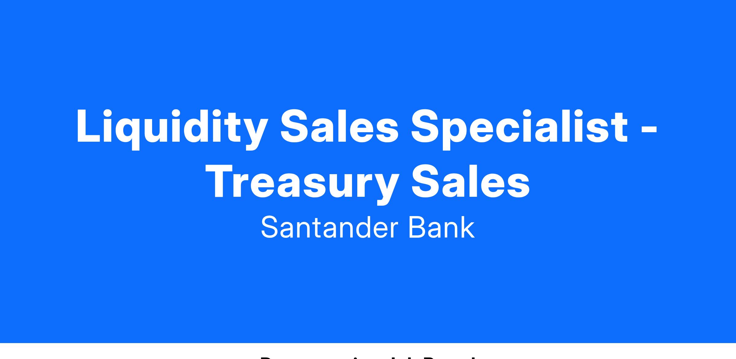 Identifies and pursues new sales prospects within existing or untapped markets within the Santander OneCommercial client base. Gathers market intelligence, generates leads, and develops proposals/campaigns to garner new liquidity business, ensuring a consistent flow of new revenues to the company. End-to-end ownership of liquidity client opportunities from sales prospecting to deal close to ongoing relationship management.