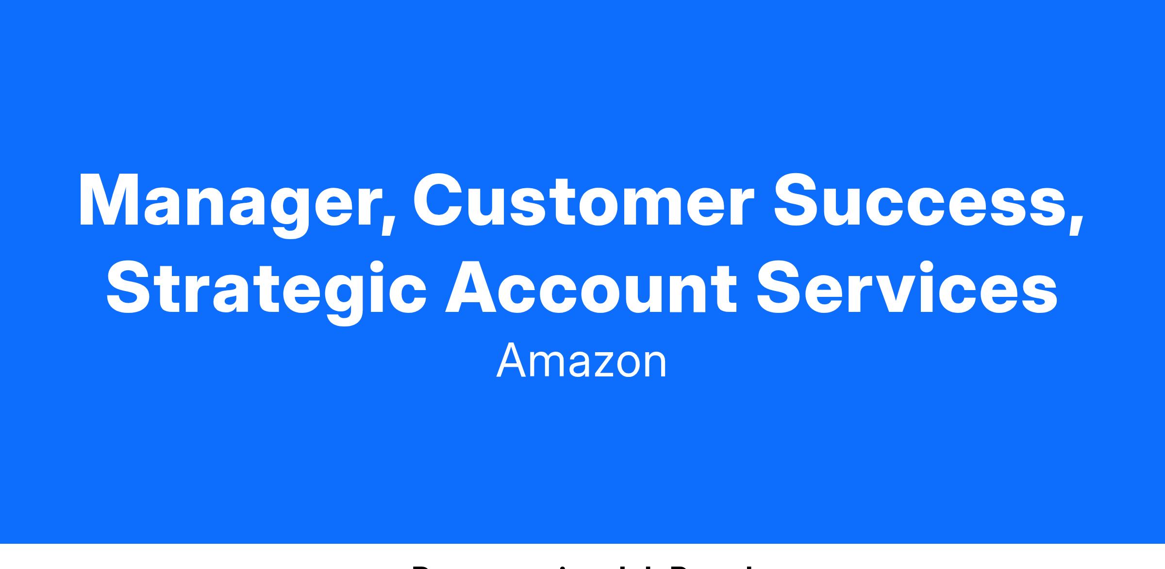 Manager, Customer Success, Strategic Account Services