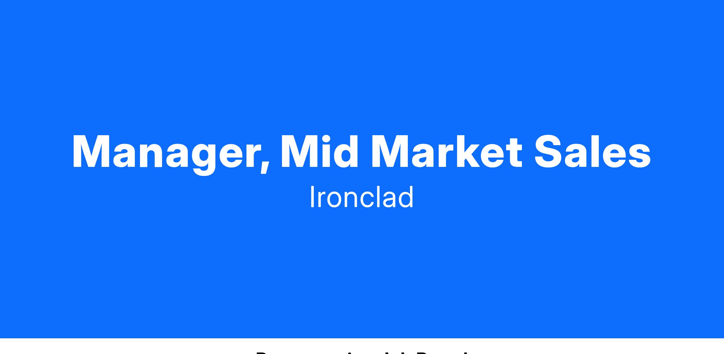 Interested in being a key sales team hire at a category-defining company, backed by some of the best investors in Silicon Valley? Ironclad is looking for a Mid Market Sales Manager to help support our rapid scale and make an impact on our revenue goals. The ideal candidate has led a team selling a SaaS product and has a track record of nurturing relationships to jointly go to market.