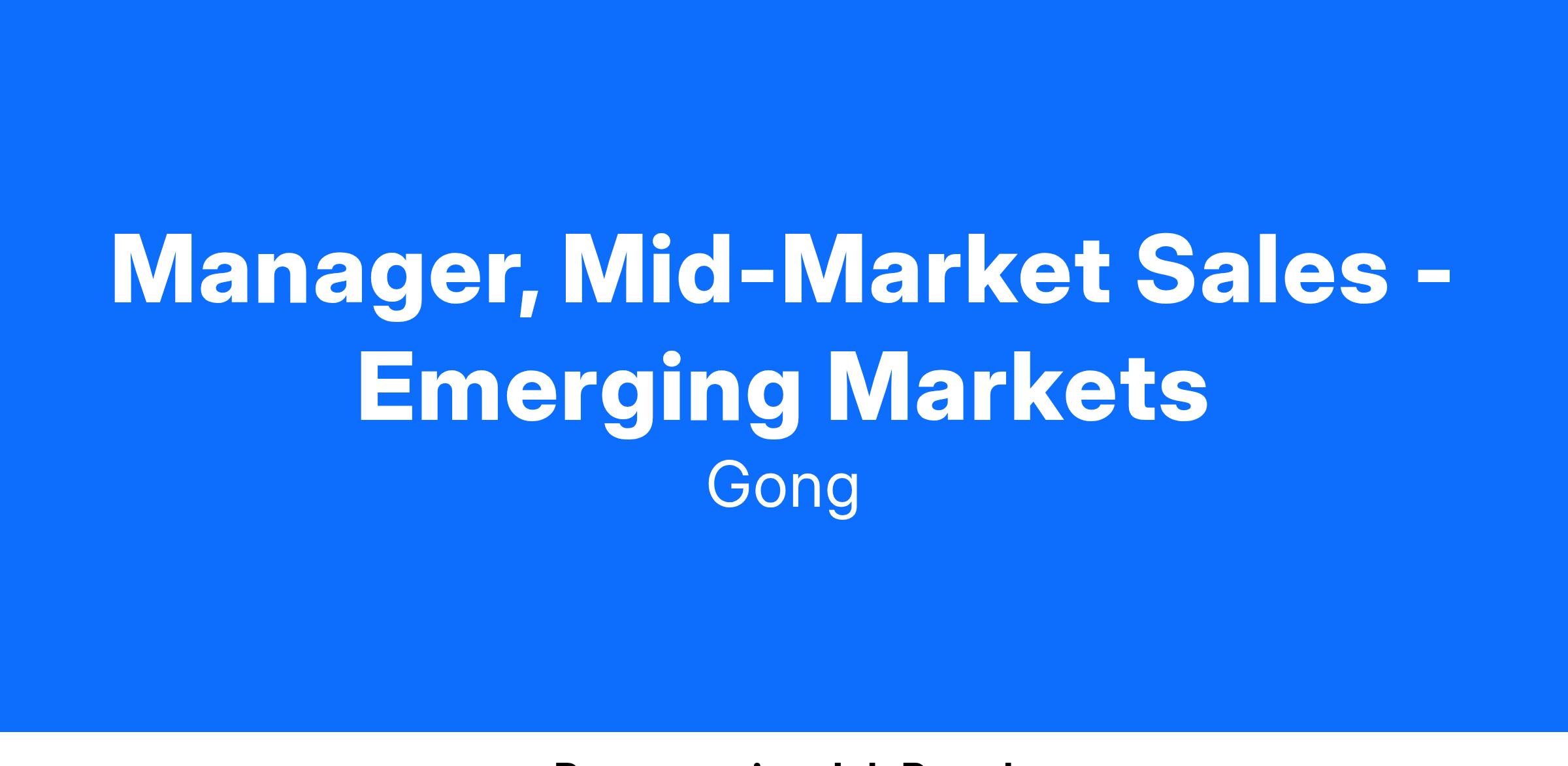 As a Mid-Market Sales manager specific for the Emerging Markets vertical, you will lead and develop a team of Account Executives and play a key role in expanding our business accounts and acquiring new customers within the financial services, healthcare, consulting, manufacturing, and energy industries. Your leadership will have a direct impact on the growth of the corporate business unit, the development of your team, and Gongβs success by crushing revenue goals. This position reports to our Vice President of Emerging Market Sales.