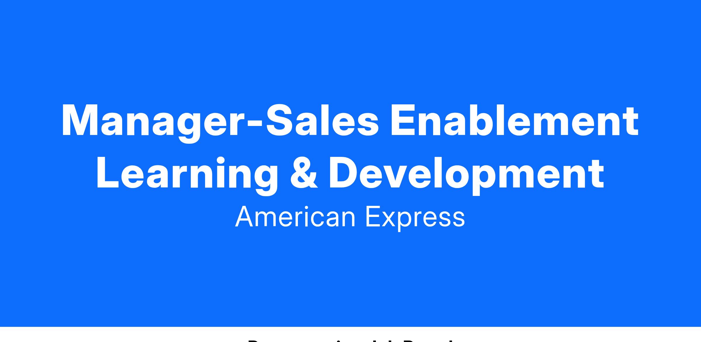 American Express Global Commercial Solutions (GCS) is the leading provider of payment solutions and expense management tools that help mid-size companies and large corporations around the world effectively manage their business spending. The Global Sales Enablement L&D team within GCS is charged with driving productivity for our Sales & Account Development colleagues through effective skills trainings & communications and compliant materials to gain the knowledge they need to be effective in their roles.