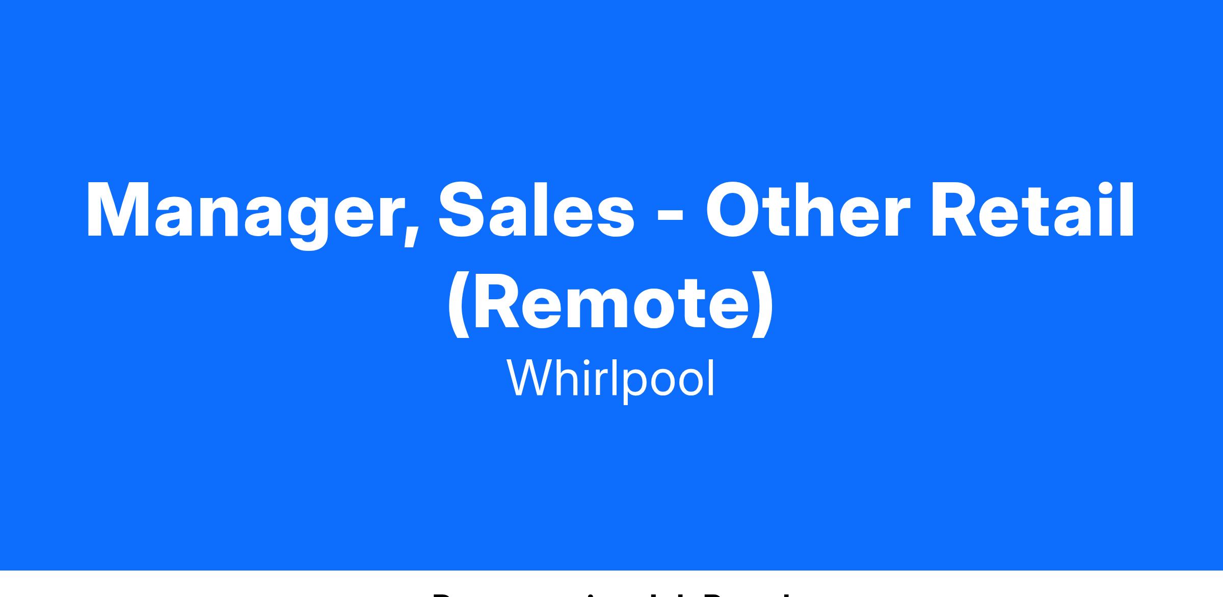 Whirlpool is currently seeking a qualified candidate to fill a critical Manager, Sales - Other Retail role in Wisconsin. This position will have sales responsibility for InSinkErator manufactured product lines, the #1 brand since developing the category in 1927. The anticipated sales volume for this role is approximately 10% of the overall InSinkErator Business at $50 million annually. This is a dynamic role managing around 12 National Accounts. Including accounts such as Menards, Costco, and Walmart. Where applicable, this individual will train, direct, and manage the independent manufacturers’ representatives supporting these customers. In addition, interface with Customer Service, e-Business, Shipping & Logistics, Finance, and Marketing in a collaborative manner to meet corporate objectives. This position is remote, with a preference for proximity to Milwaukee and Chicago but not required. This role requires between 30% to 50% domestic travel with potential overnight stays and occasional weekend commitments for trade and dealer shows. #LI-DD1