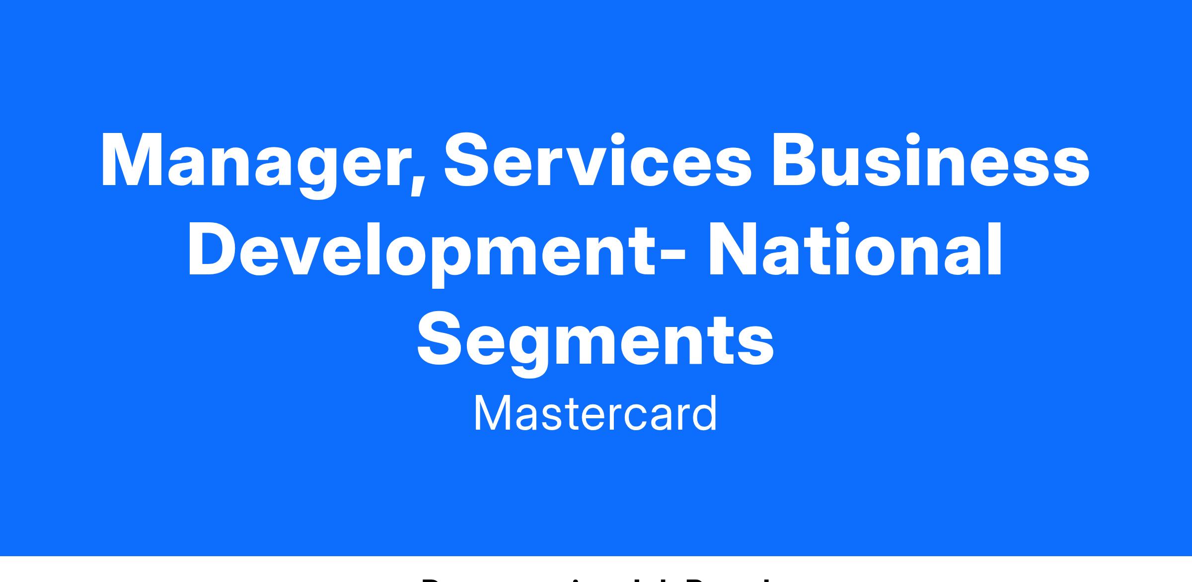 Manager, Services Business Development- National Segments