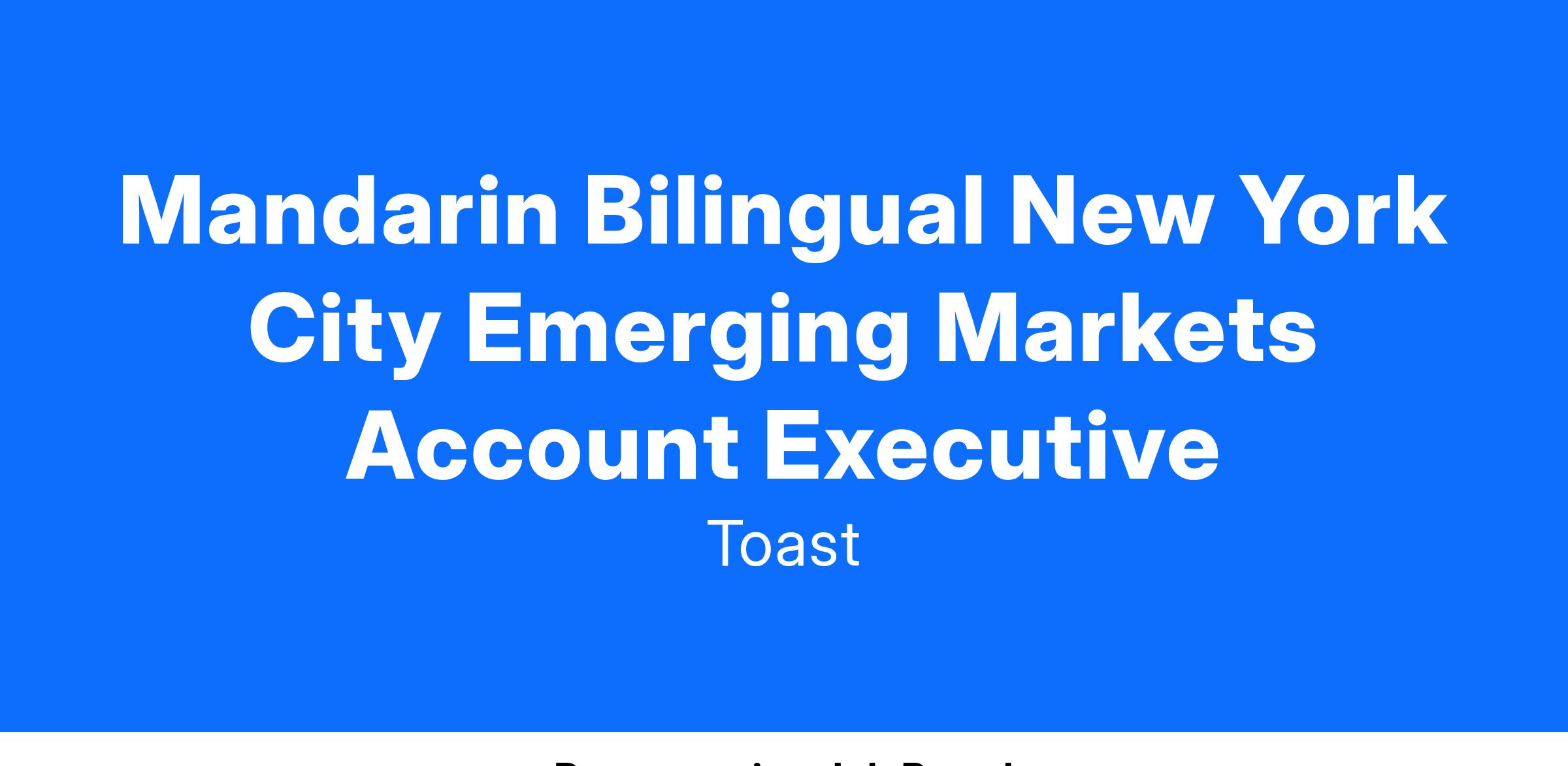 Your Mandarin skills will be used on the job to communicate with Mandarin-speaking customers and prospective customers, while your English language skills will be used primarily for communicating with other employees at Toast. As with most internal business at Toast, the job application and interview process for this role will be conducted primarily in English.