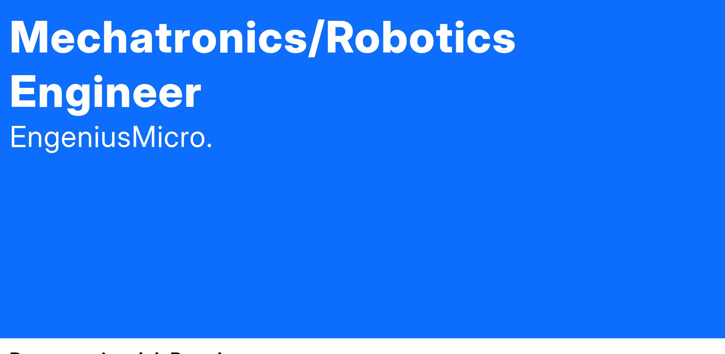 - Bachelor's degree in Mechanical Engineering, Electrical Engineering, Robotics, or Computer Science