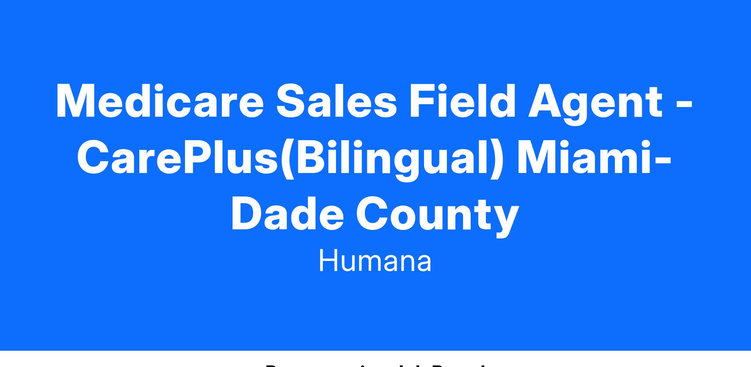 In this field position, you will: build community relationships, drive self-generated sales and meet sales goals and metrics while working independently. You will be interacting with CarePlus’ customers, external business partners and the community we serve through face-to-face, virtual and telephonic interactions. Face to face will encompass grass roots marketing in the community and visiting prospects in their homes. Our Medicare Sales Field Agent sells individual health plan products and educate beneficiaries on our services in a field setting. Some of our additional products include: Life, Annuity, Indemnity, Dental, Vision, Prescription, and more. Humana has an inclusive and diverse culture welcoming candidates with multilingual skill sets to service our consumers.