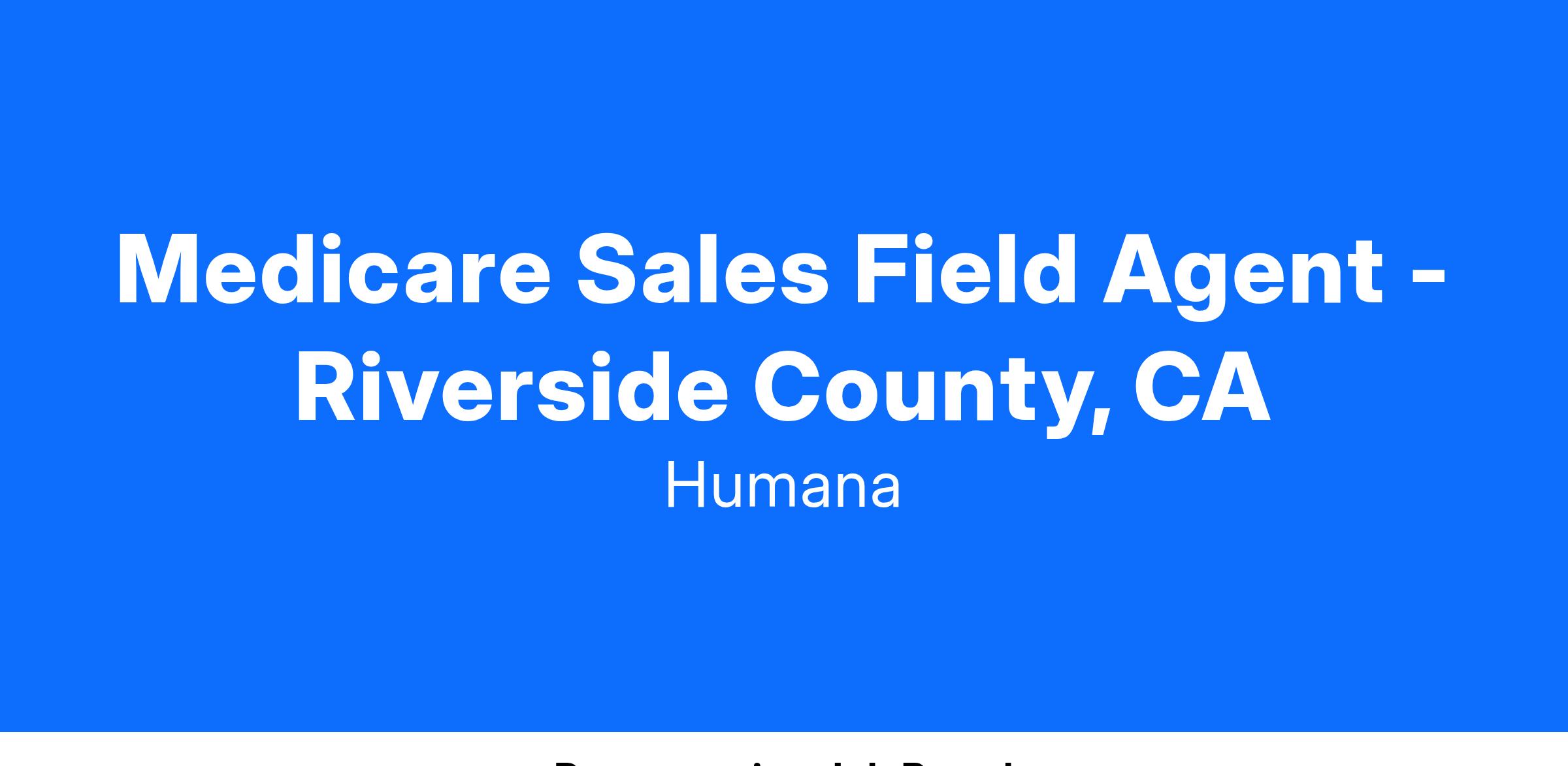 Medicare Sales Field Agent - Riverside County, CA