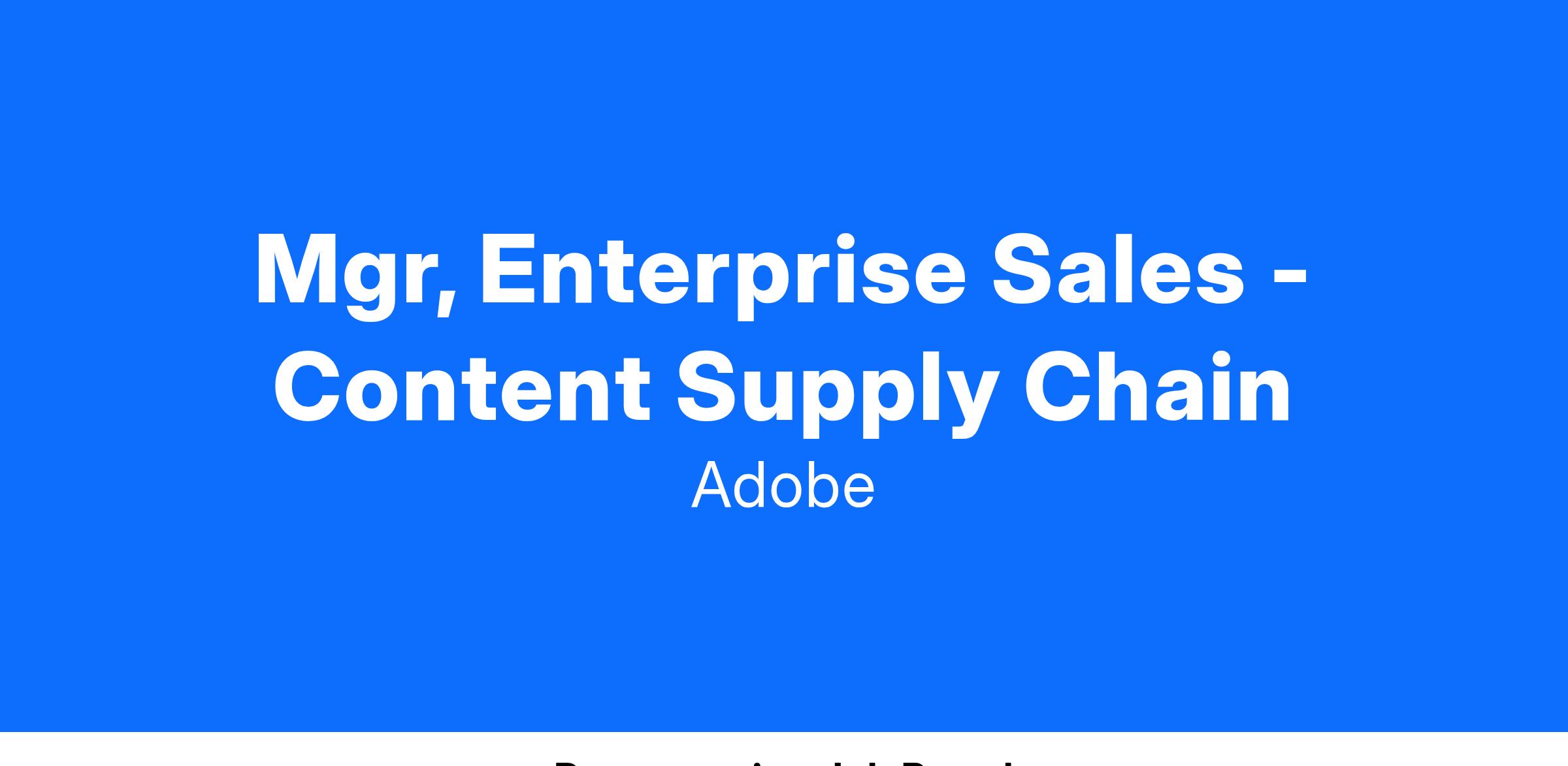 Mgr, Enterprise Sales - Content Supply Chain
