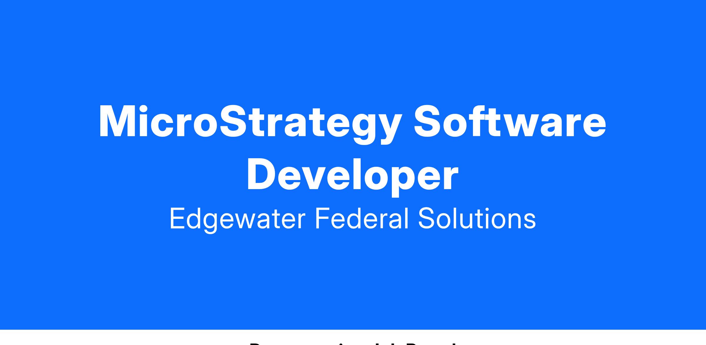 Edgewater Federal Solutions is seeking a MicroStrategy Developer 3 to support the IT program at a major national laboratory. This is hybrid - onsite in Los Alamos, NM. This position is for 12 months.Β