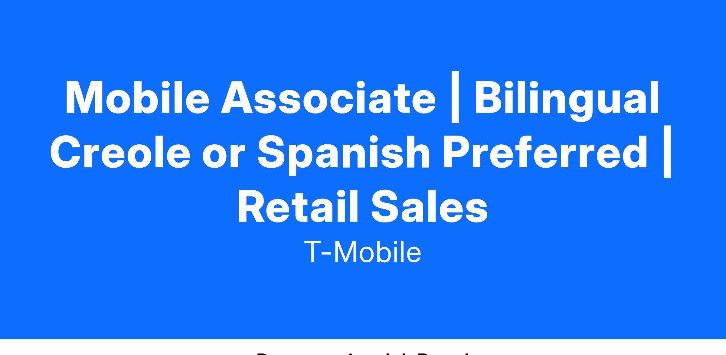 Mobile Associate | Bilingual Creole or Spanish Preferred | Retail Sales