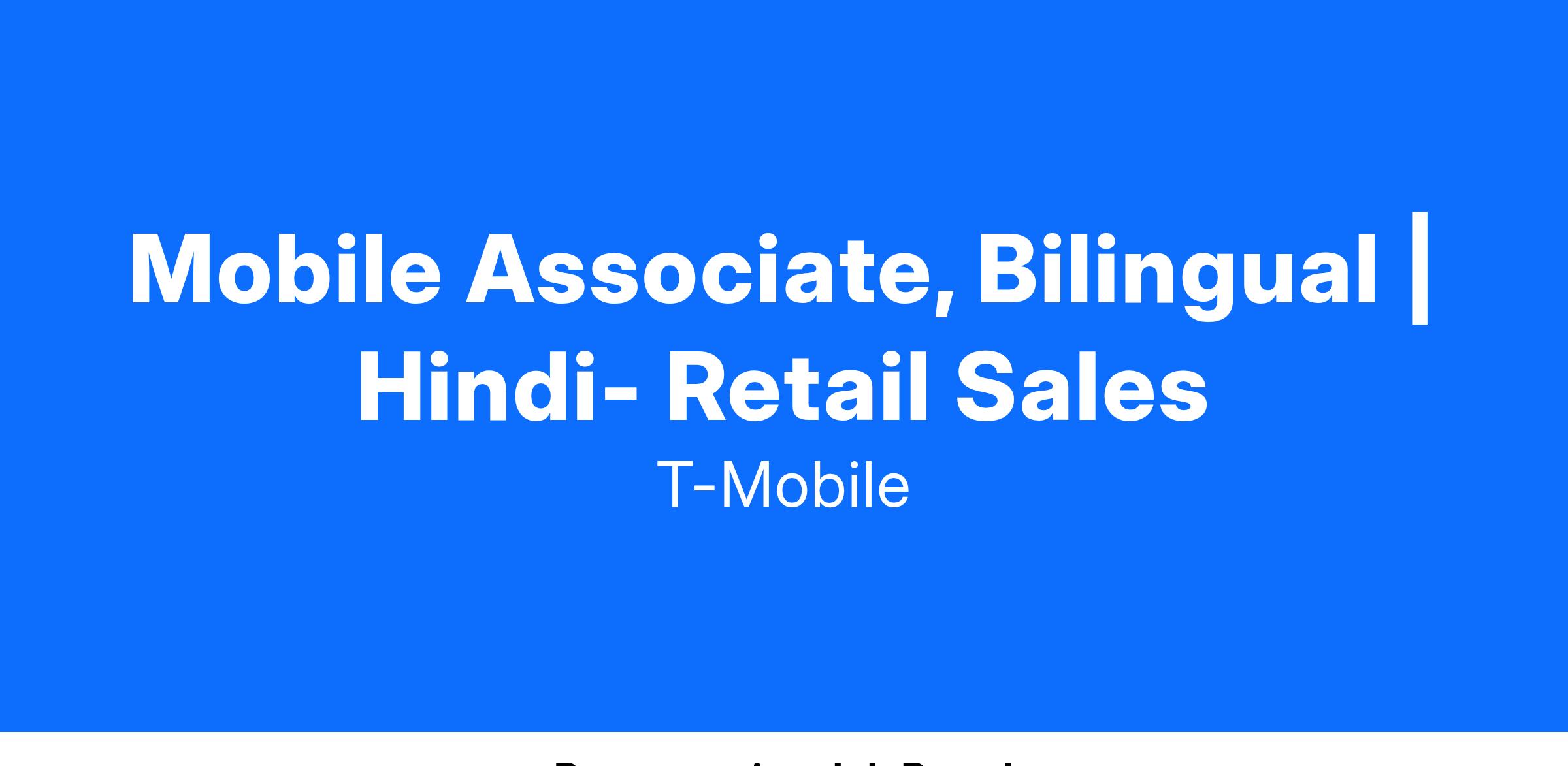 Mobile Associate, Bilingual | Hindi- Retail Sales