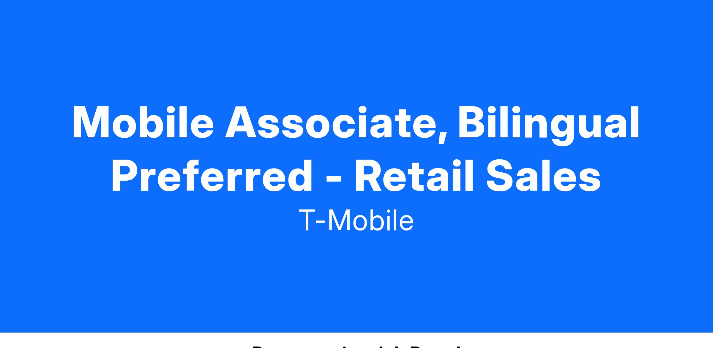 Mobile Associate, Bilingual Preferred - Retail Sales