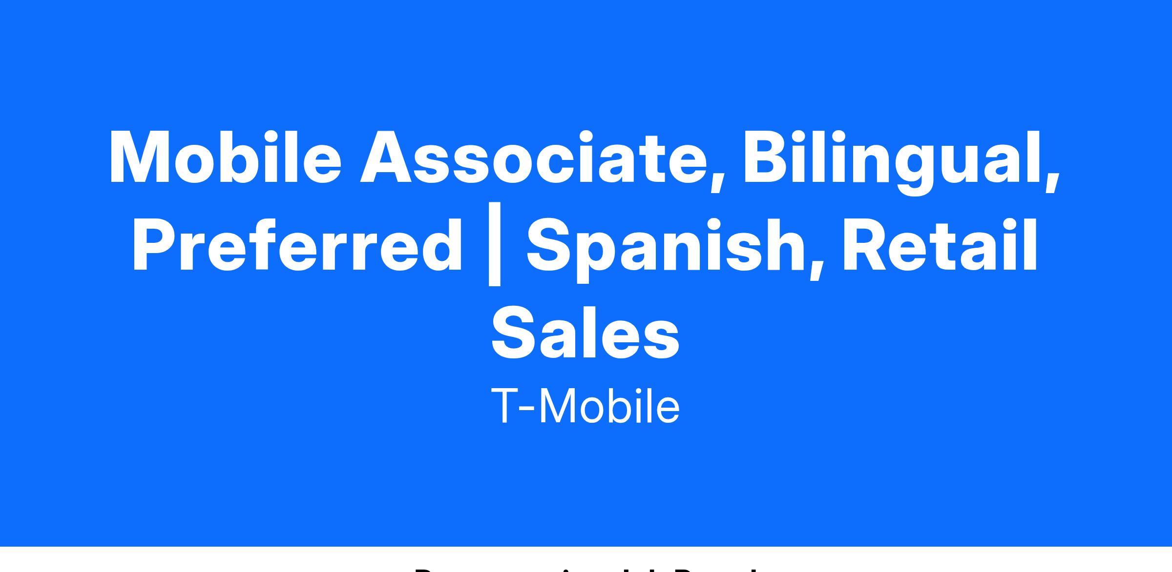 Mobile Associate, Bilingual, Preferred | Spanish, Retail Sales