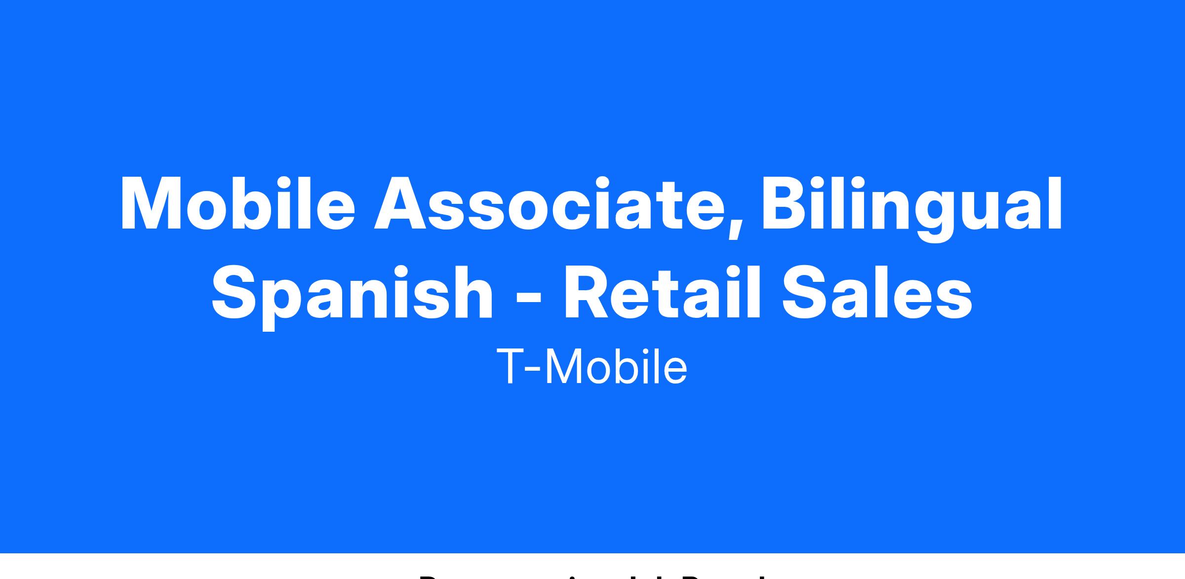 Mobile Associate, Bilingual Spanish - Retail Sales