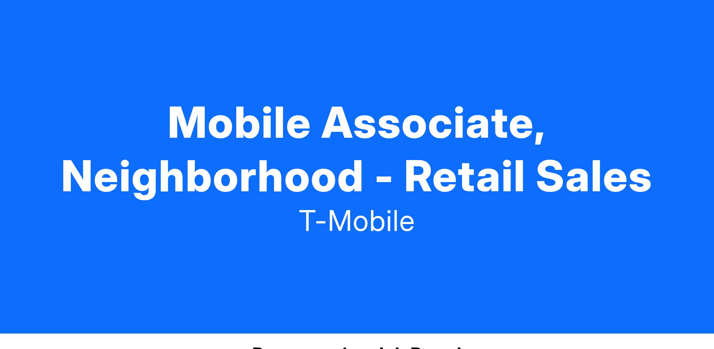 Mobile Associates (MA) work as a member of a Retail Team of Experts to bring the T-Mobile brand to life. They're brand ambassadors who build energy and excitement around our products and services. They are passionate about the connected world and thrive in a fast-paced environment, where technology innovations, customer needs, and the Retail experience are continuously evolving. They immerse themselves in significant connections with our customers, and their ability to build new and deepen existing relationships is unmatched across the wireless industry. They continuously work to build expertise in uncovering our customers' needs and have a passion to educate, demonstrate and recommend device and service solutions. This role is a learning role, where new associates are working with their team and proactively building skills and proficiencies, in preparation for the next level up as a Mobile Expert. As a Mobile Associate, you will be required to successfully complete new employee training.