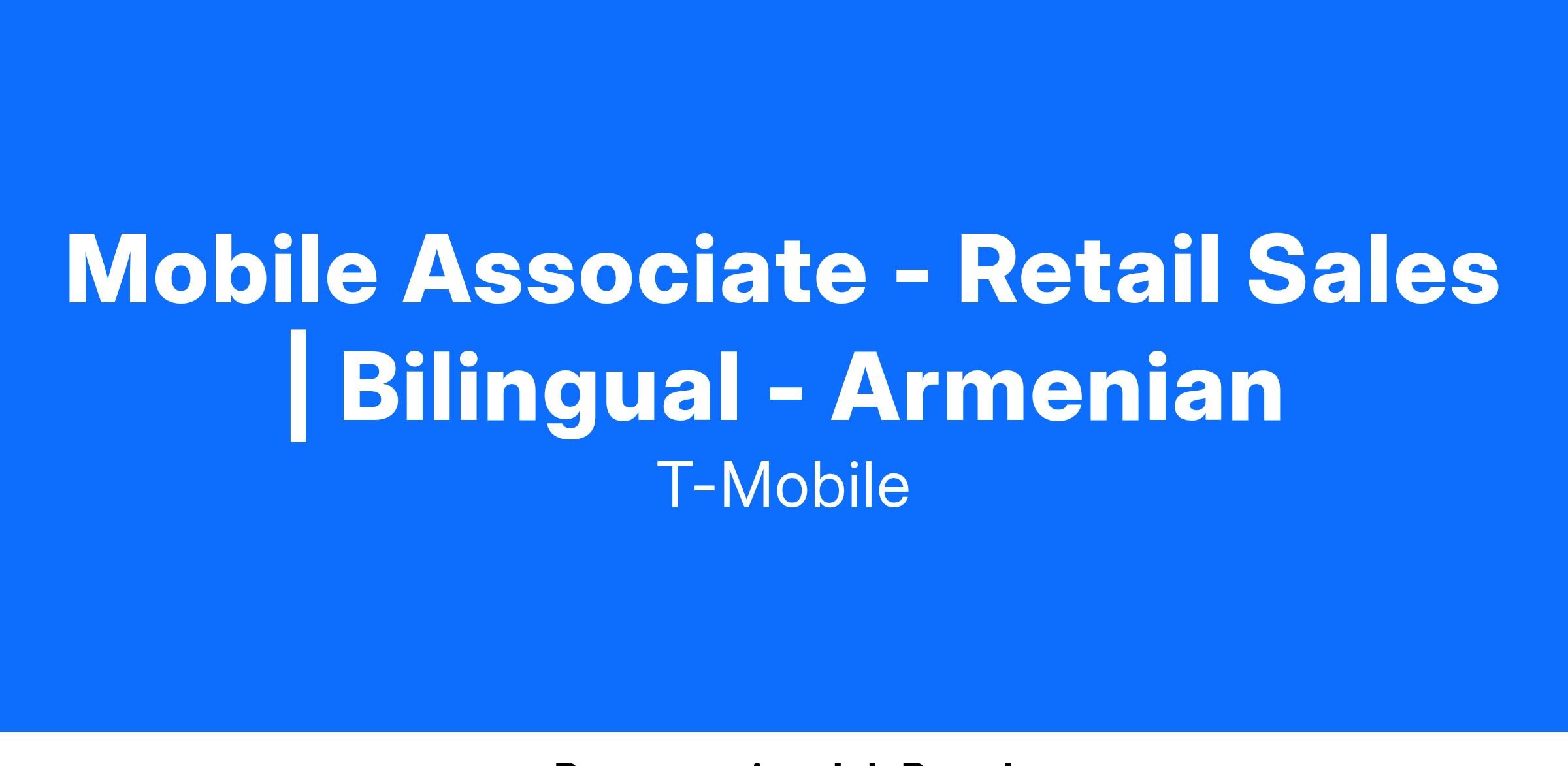 Mobile Associate - Retail Sales | Bilingual - Armenian
