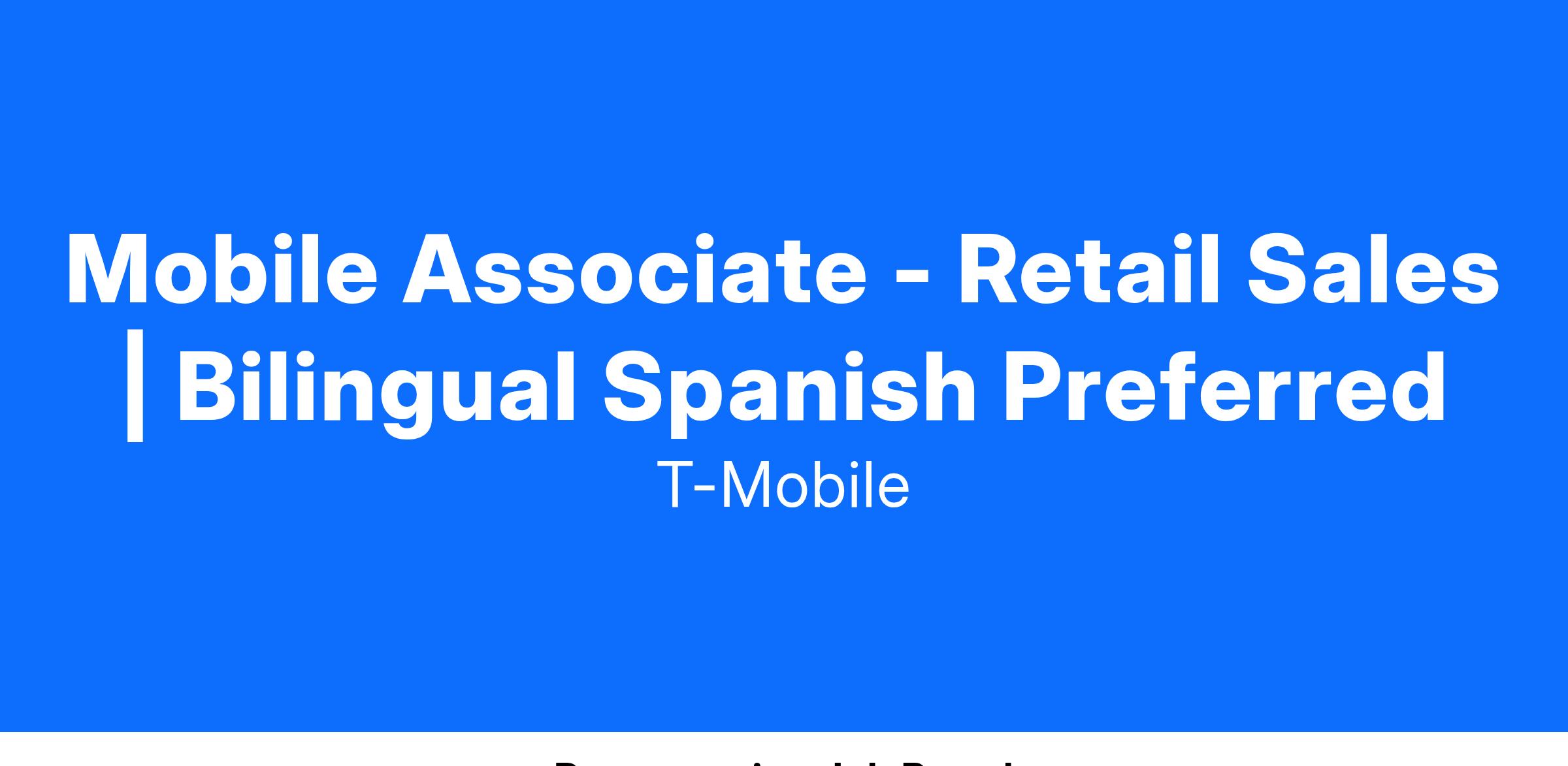 Mobile Associates (MA) work as a member of a Retail Team of Experts to bring the T-Mobile brand to life. They're brand ambassadors who build energy and excitement around our products and services. They are passionate about the connected world and thrive in a fast-paced environment, where technology innovations, customer needs, and the Retail experience are continuously evolving. They immerse themselves in significant connections with our customers, and their ability to build new and deepen existing relationships is unmatched across the wireless industry.Within the first 90 days working at T-Mobile, Mobile Associates receive on-the-job training and are eligible for incentive pay while completing training milestones. Once completed, Mobile Associates promote to the Mobile Expert role and become eligible for an annualized incentive target of $18,000/year. Actual incentives vary based on performance and full-time status. All employees at T-Mobile, are guaranteed to earn $20/hour inclusive of base pay and incentives. And since we are ALL owners, EVERY employee at T-Mobile is eligible for an Annual Stock Grant.
