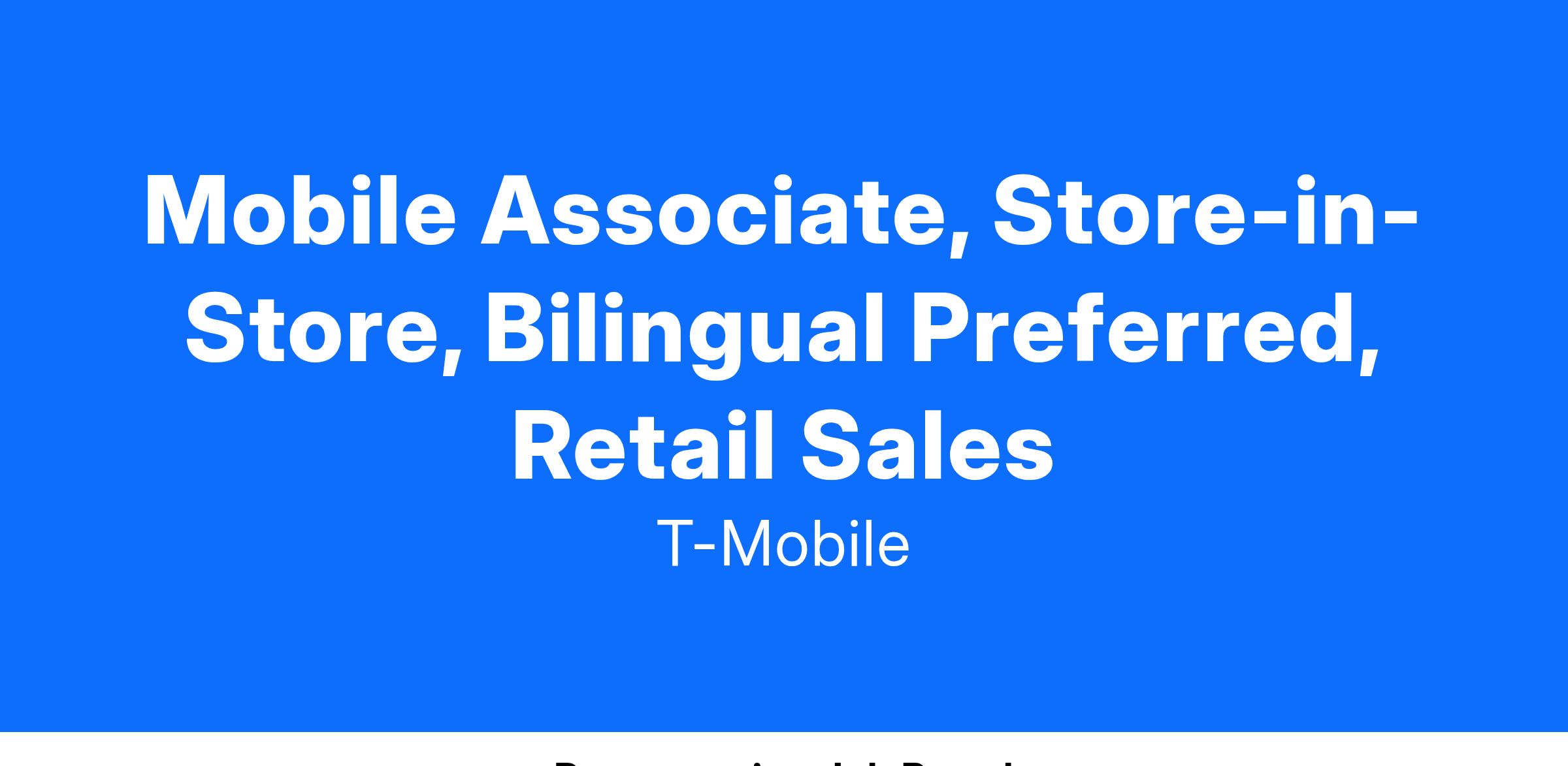 Mobile Associate, Store-in-Store, Bilingual Preferred, Retail Sales