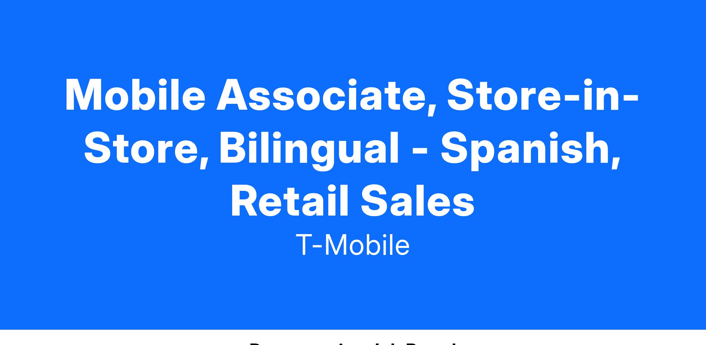 Mobile Associate, Store-in-Store, Bilingual - Spanish, Retail Sales