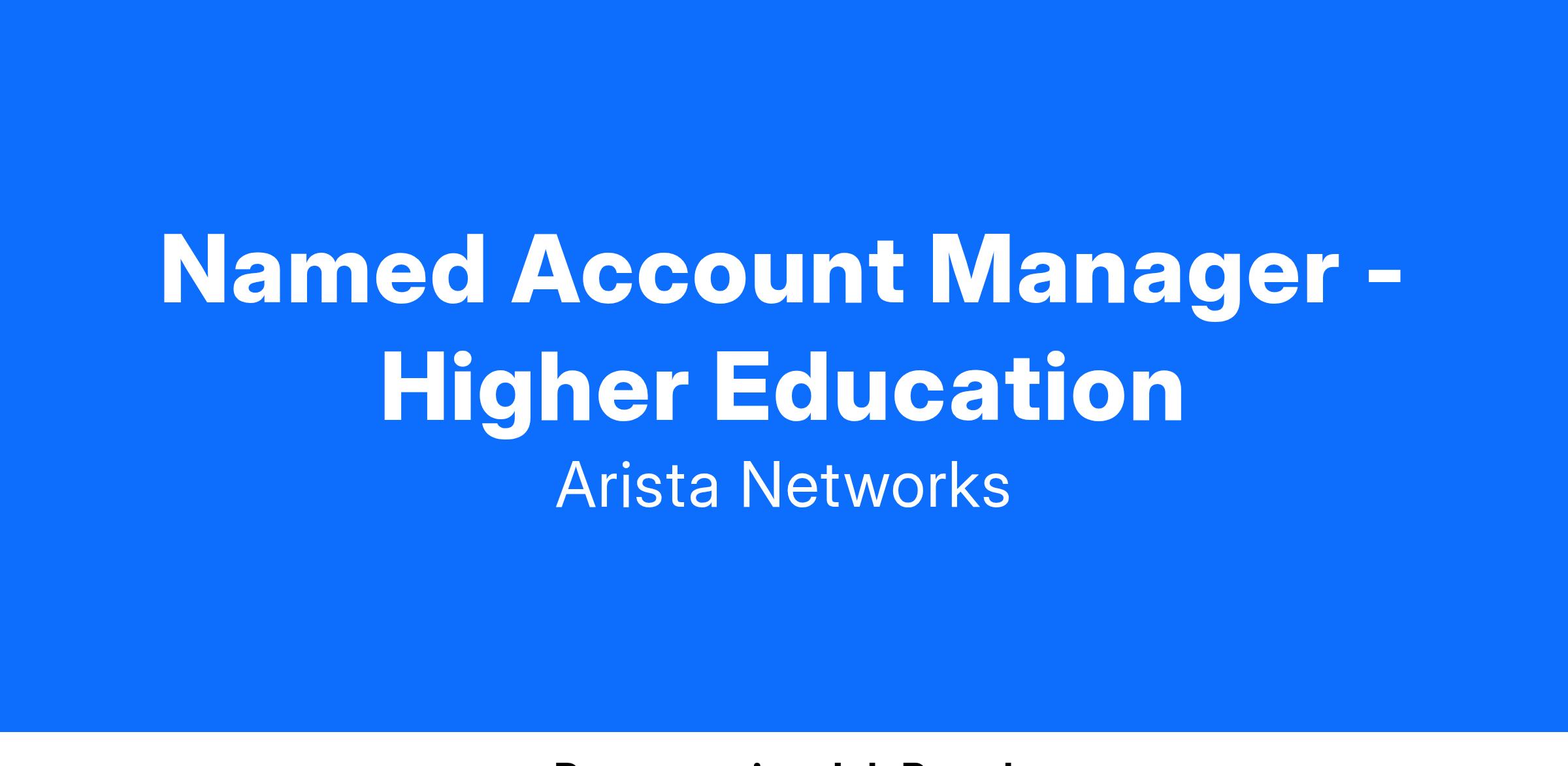 • Meet with key influencers, decision-makers, and C-levels to present Arista’s value proposition.