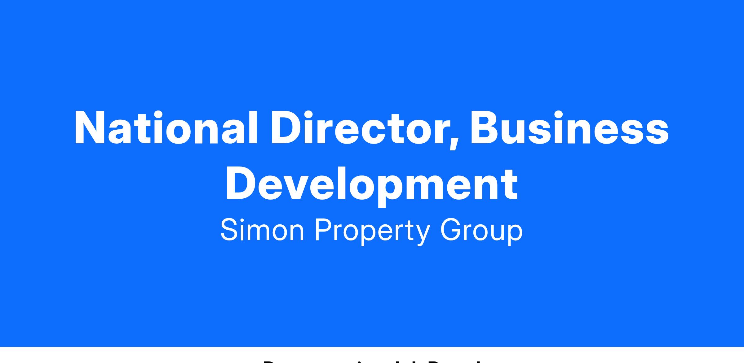 The primary purpose of the National Director of Business Development is to use his/her experience, vision, and contacts, to sell Simon Malls as a Marketing Medium to brands, agencies and businesses at a National level. The National Director will also have experience executing location based campaigns utilizing new technologies including beacons, mobile integration, and geofencing.