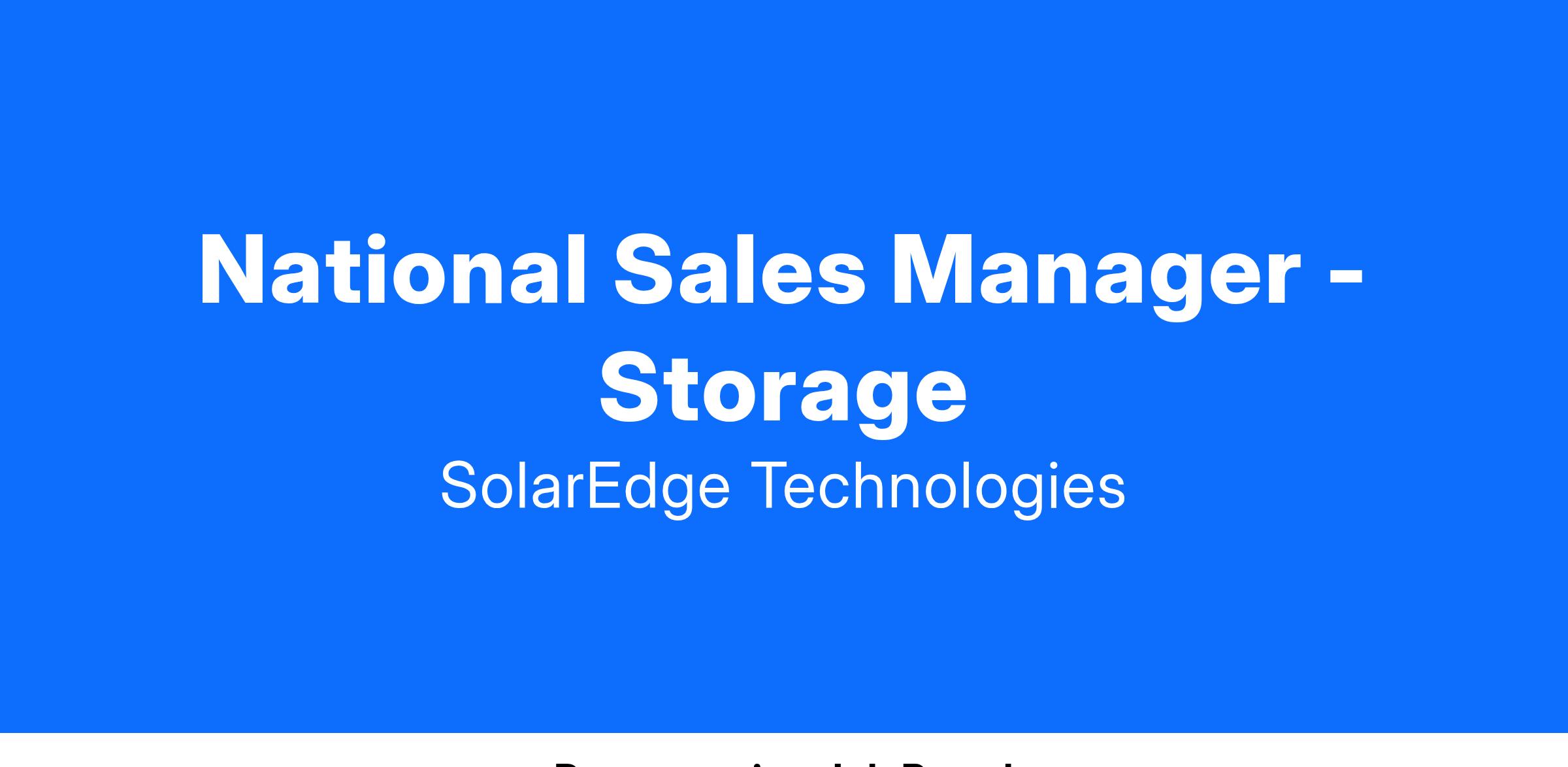 As the North America, National Sales Manager for the Energy Storage Division, you will be pivotal in driving the growth and success of SolarEdge's BESS energy storage products and services across the North American market. If you are a self starter and results-oriented professional passionate about renewable energy and energy storage, we invite you to join SolarEdge and be a key player in shaping the future of sustainable energy solutions in North America.