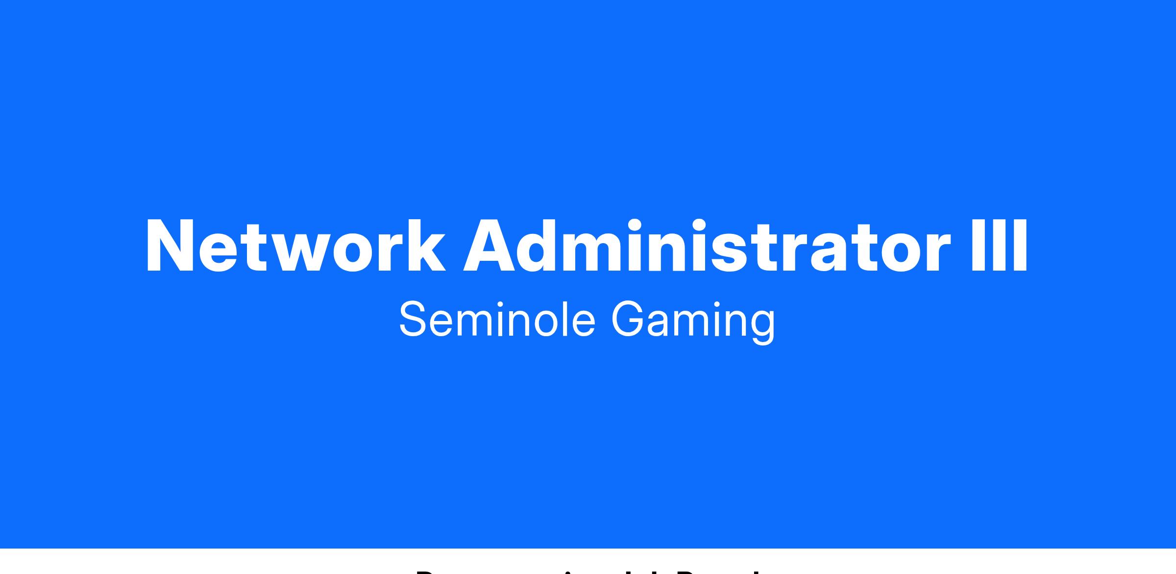 The Network Administrator – Level III – provides high level network engineering design, installation, and support expertise across the full lifecycle of the systems, services, and solutions supported by the Corporate Information Technology team at Seminole Hard Rock Support Services. The primary focus will be LAN, WAN, SD-WAN for on and off premise along with Wireless, firewall, internet connectivity and VPN to a lesser extent, The position requires strong problem-solving, analytical and communications skills as well as deep knowledge of the technologies used.