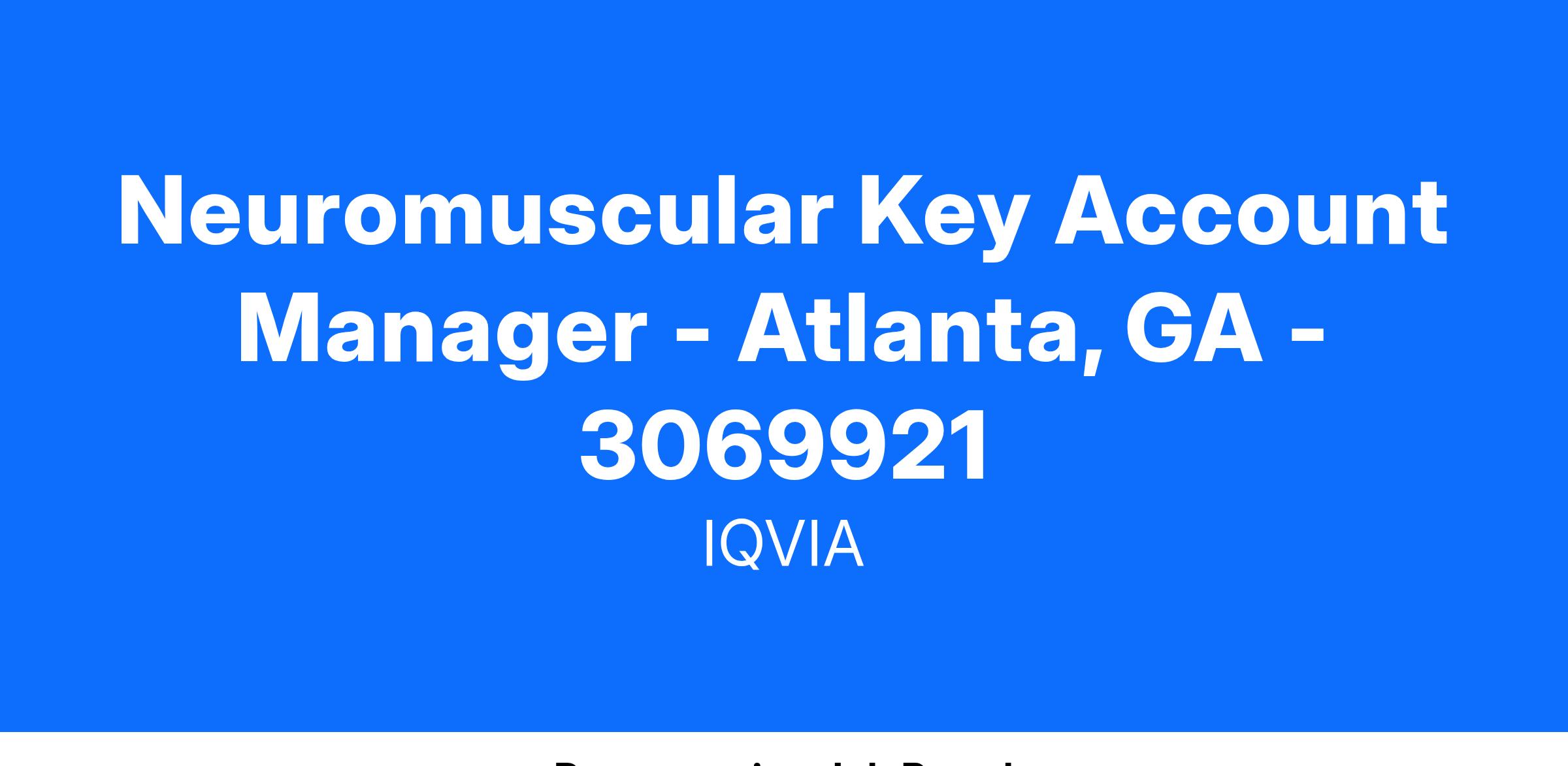 IQVIA in partnership with ITF Therapeutics are excited to announce that we are seeking candidates for the role of Neuromuscular Key Account Manager. This is an exciting opportunity to launch an approved product for the treatment of Duchenne muscular dystrophy