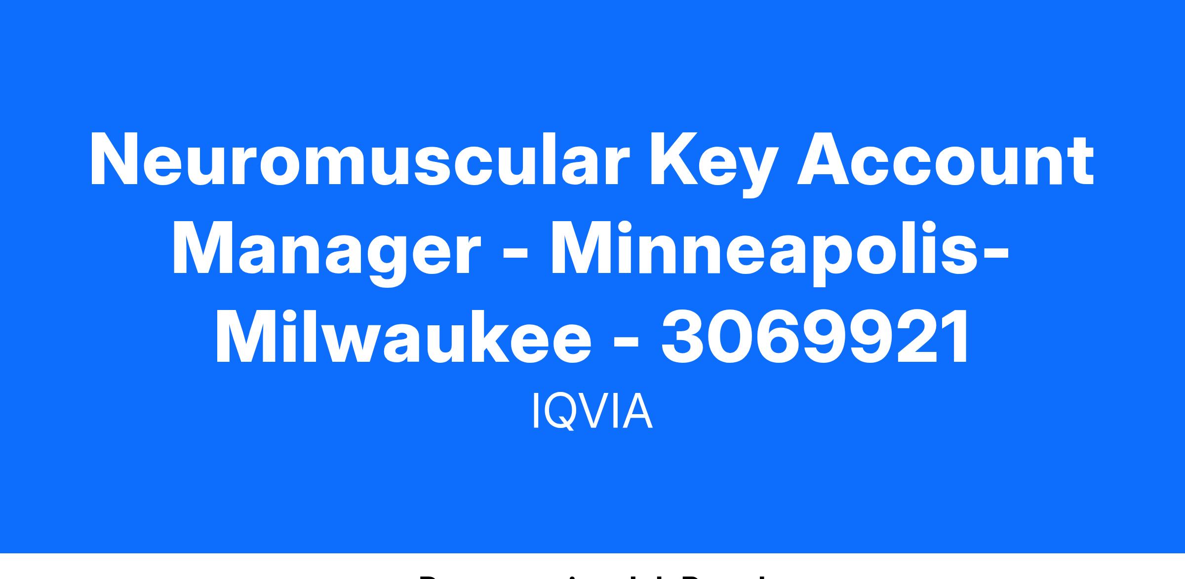 IQVIA in partnership with ITF Therapeutics are excited to announce that we are seeking candidates for the role of Neuromuscular Key Account Manager. This is an exciting opportunity to launch an approved product for the treatment of Duchenne muscular dystrophy