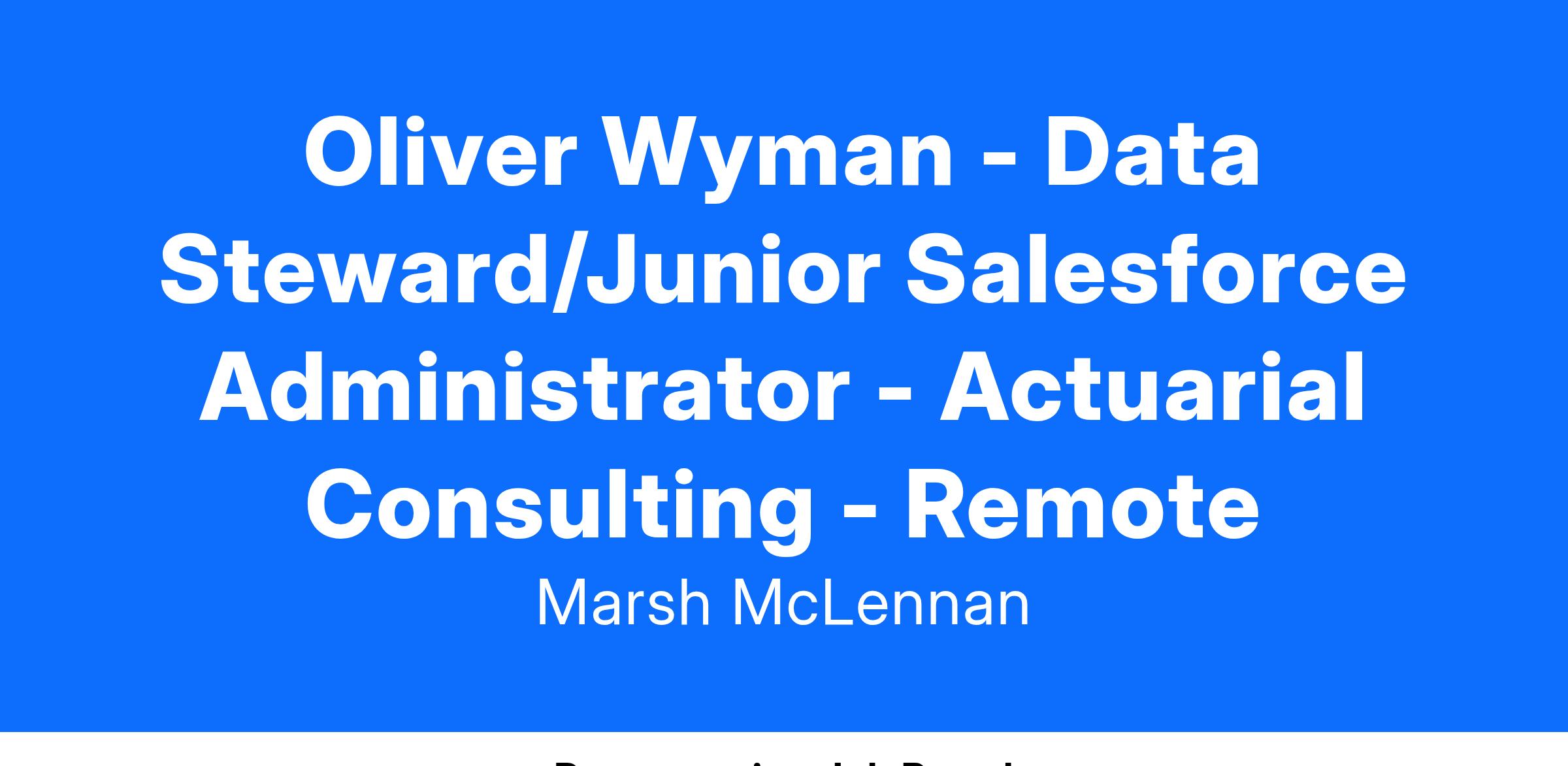 Oliver Wyman is looking for a proactive and detail-oriented individual who thrives in a fast-paced environment and has a strong understanding of data management principles. In this role, you will be responsible for ensuring the accuracy, completeness, and reliability of our organization's data assets and will be principally responsible for assisting our Salesforce Platform Manager with the maintenance of our Salesforce platform.