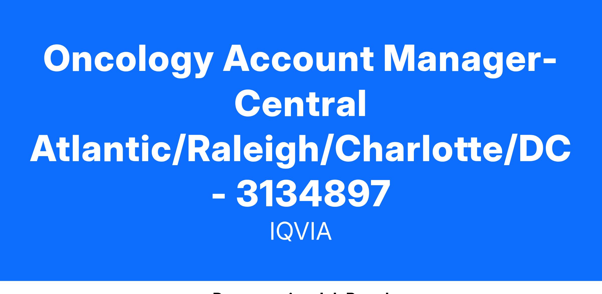 Oncology Account Manager- Central Atlantic/Raleigh/Charlotte/DC - 3134897