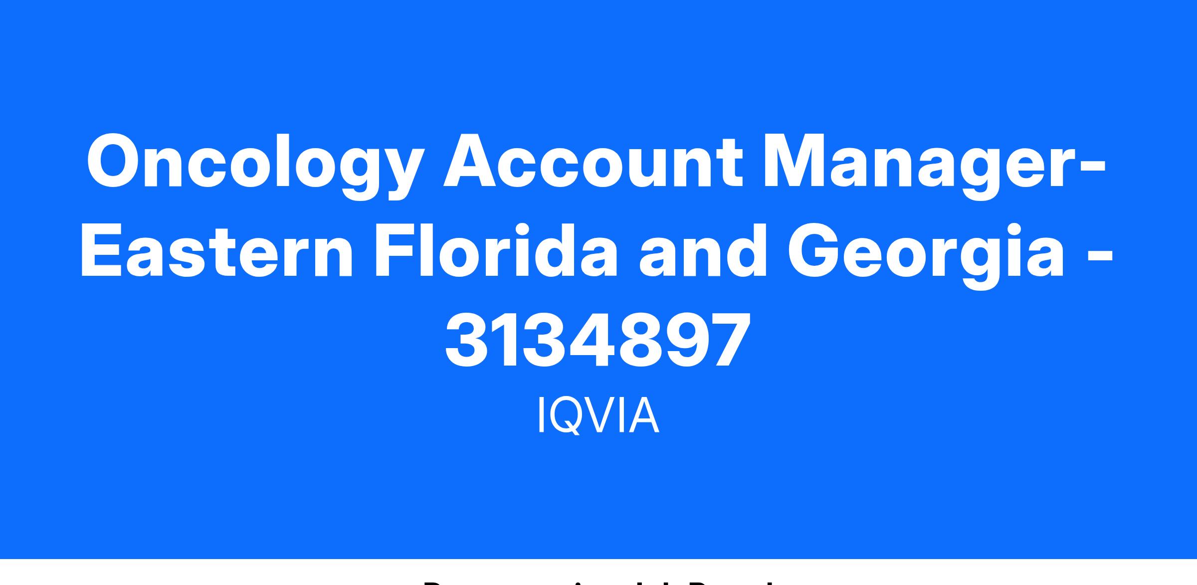 Oncology Account Manager- Eastern Florida and Georgia - 3134897