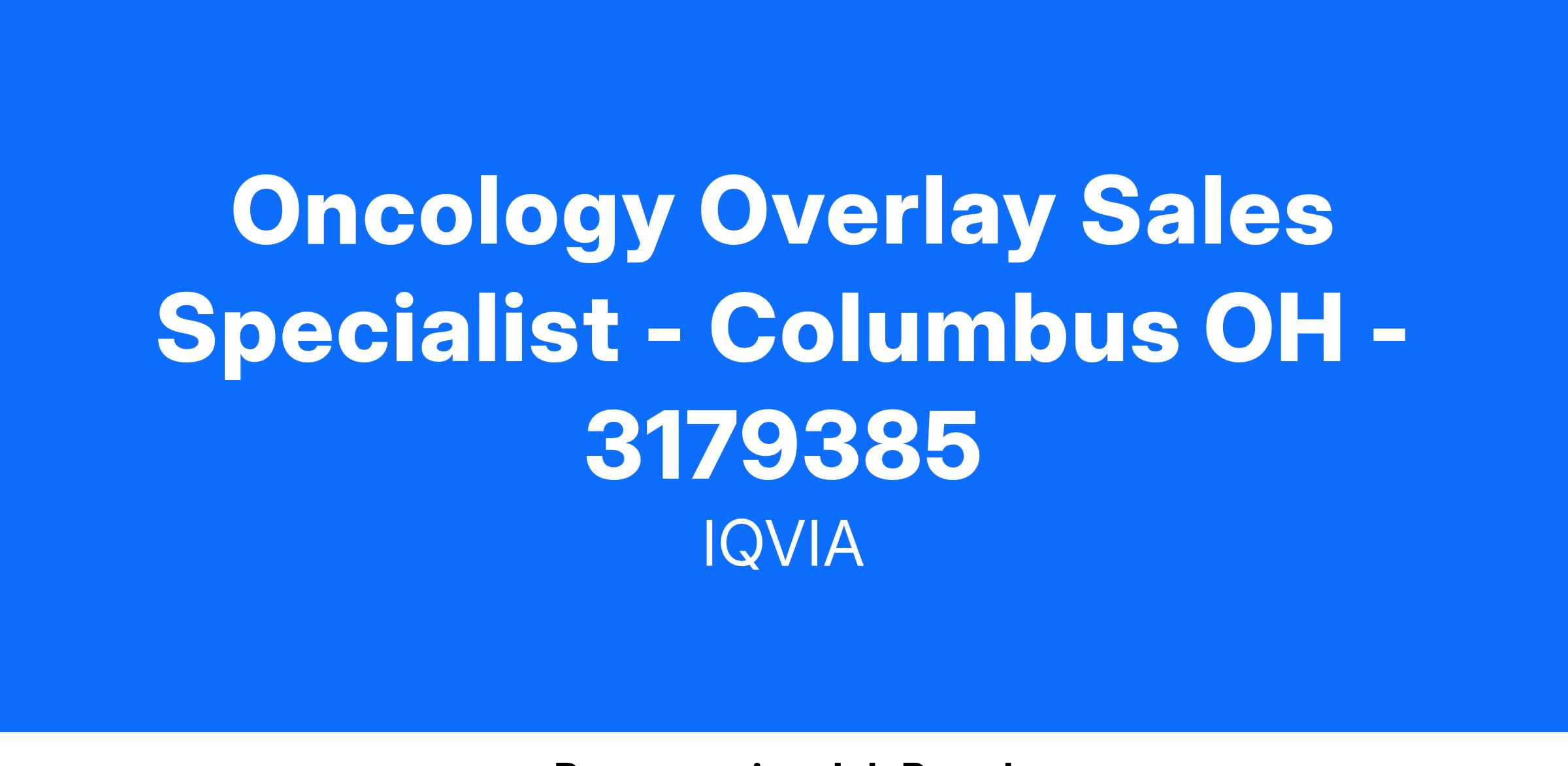 Oncology Overlay Sales Specialist - Columbus OH - 3179385