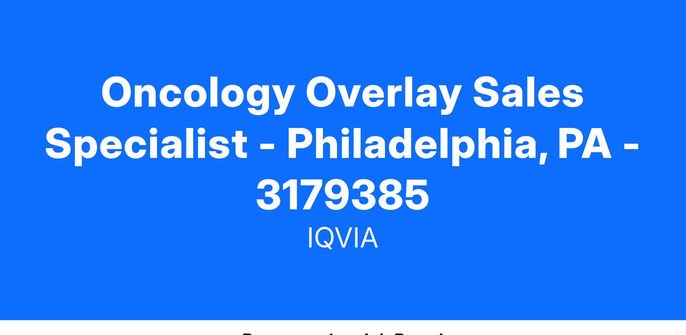 Oncology Overlay Sales Specialist - Philadelphia, PA - 3179385