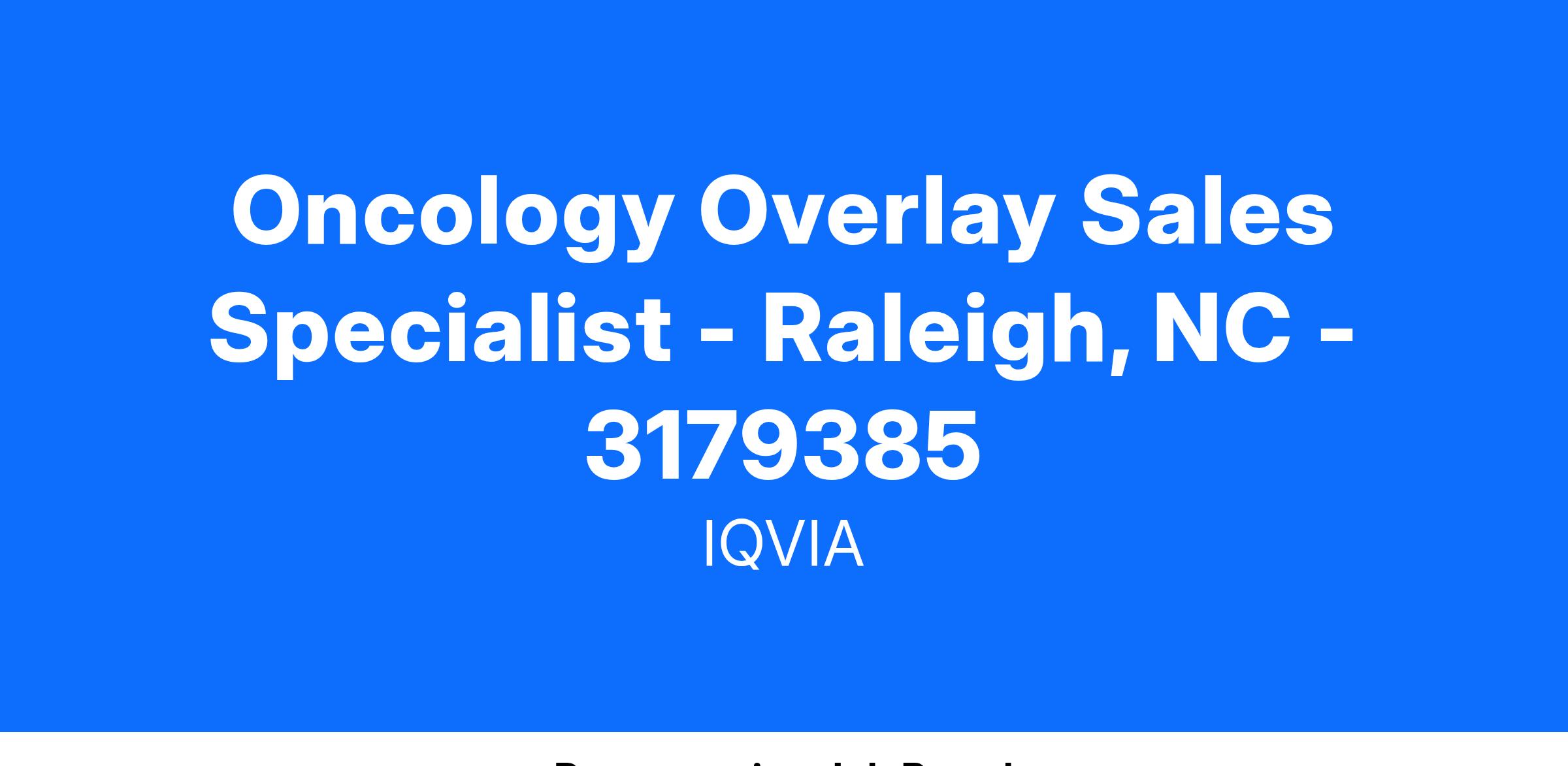 Oncology Overlay Sales Specialist - Raleigh, NC - 3179385