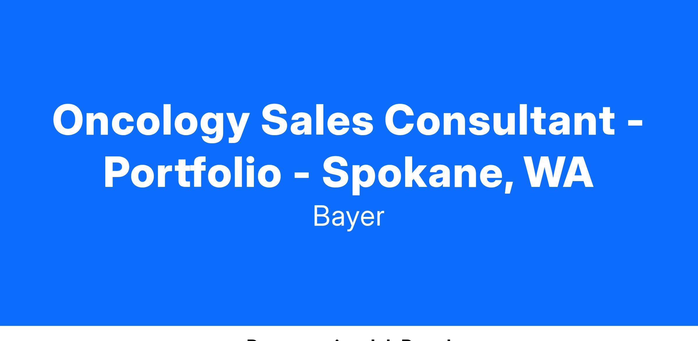Oncology Sales Consultant - Portfolio - Spokane, WA