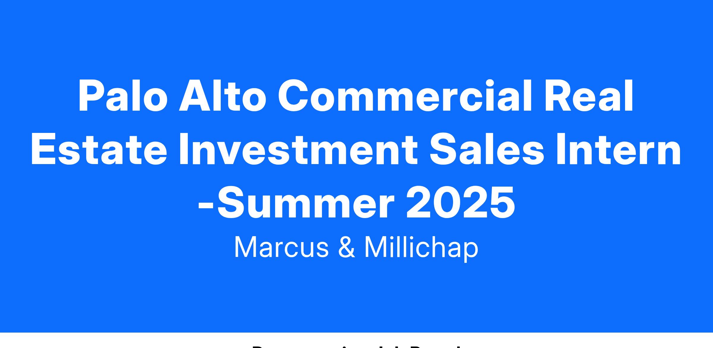 Palo Alto Commercial Real Estate Investment Sales Intern -Summer 2025