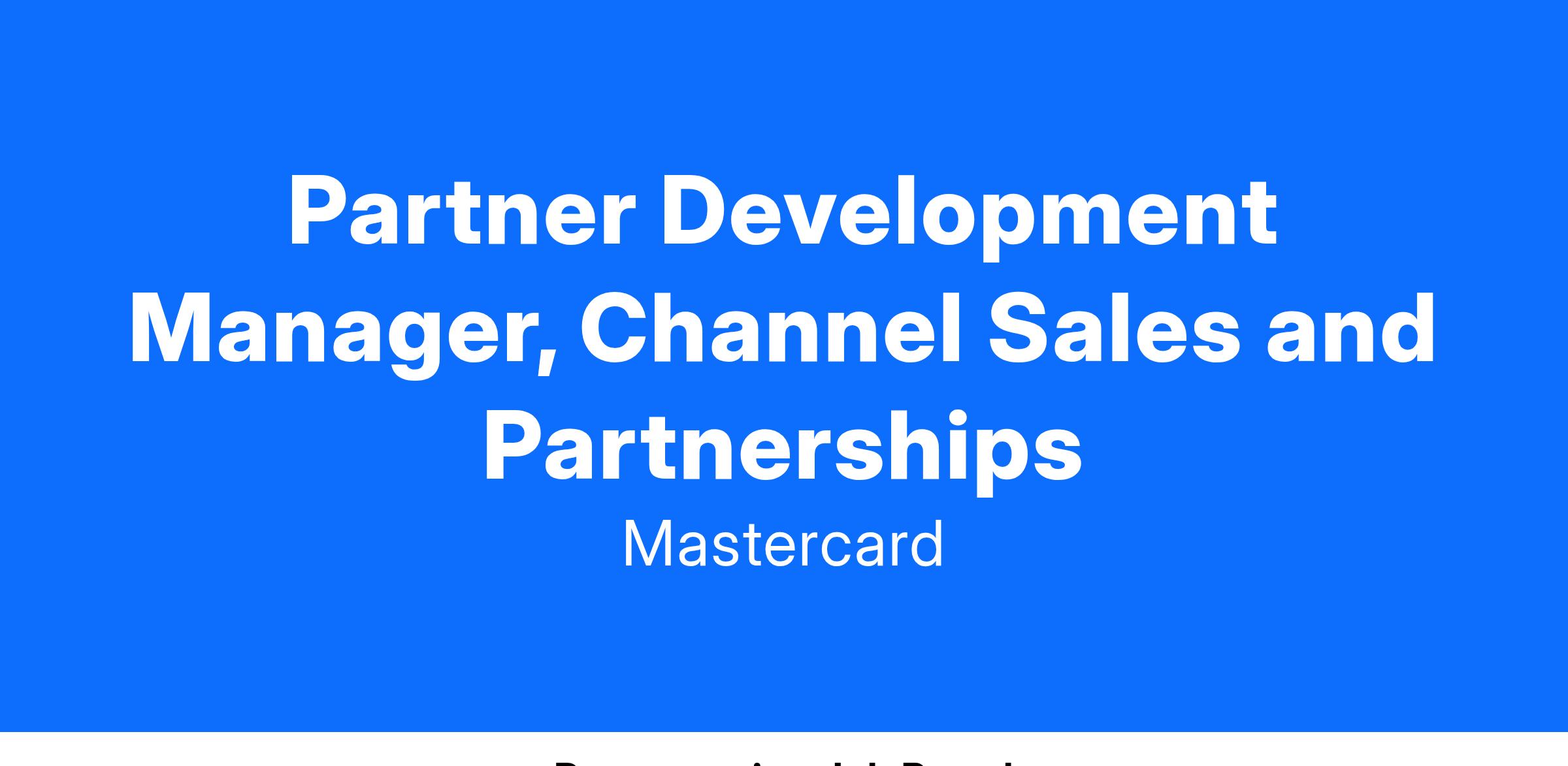 We are looking for a Partner Development Manager to help us activate and grow some of our most strategic partners at Mastercard Services. If you have the passion to help build thriving relationships, enjoy working with people, and are driven by results and getting things done, please continue reading!