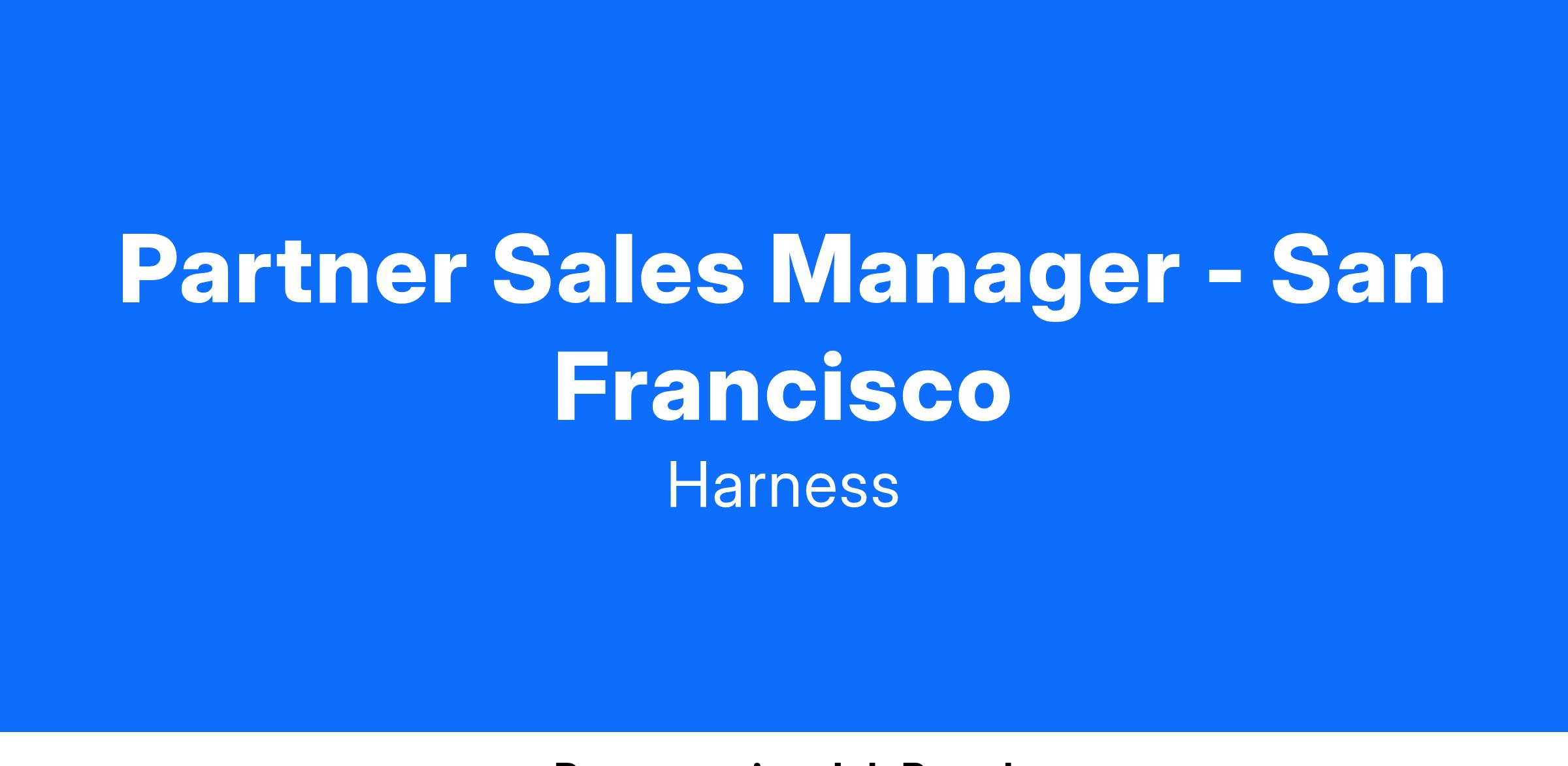 - Recruit, onboard and enable new partners into the Harness ecosystem.