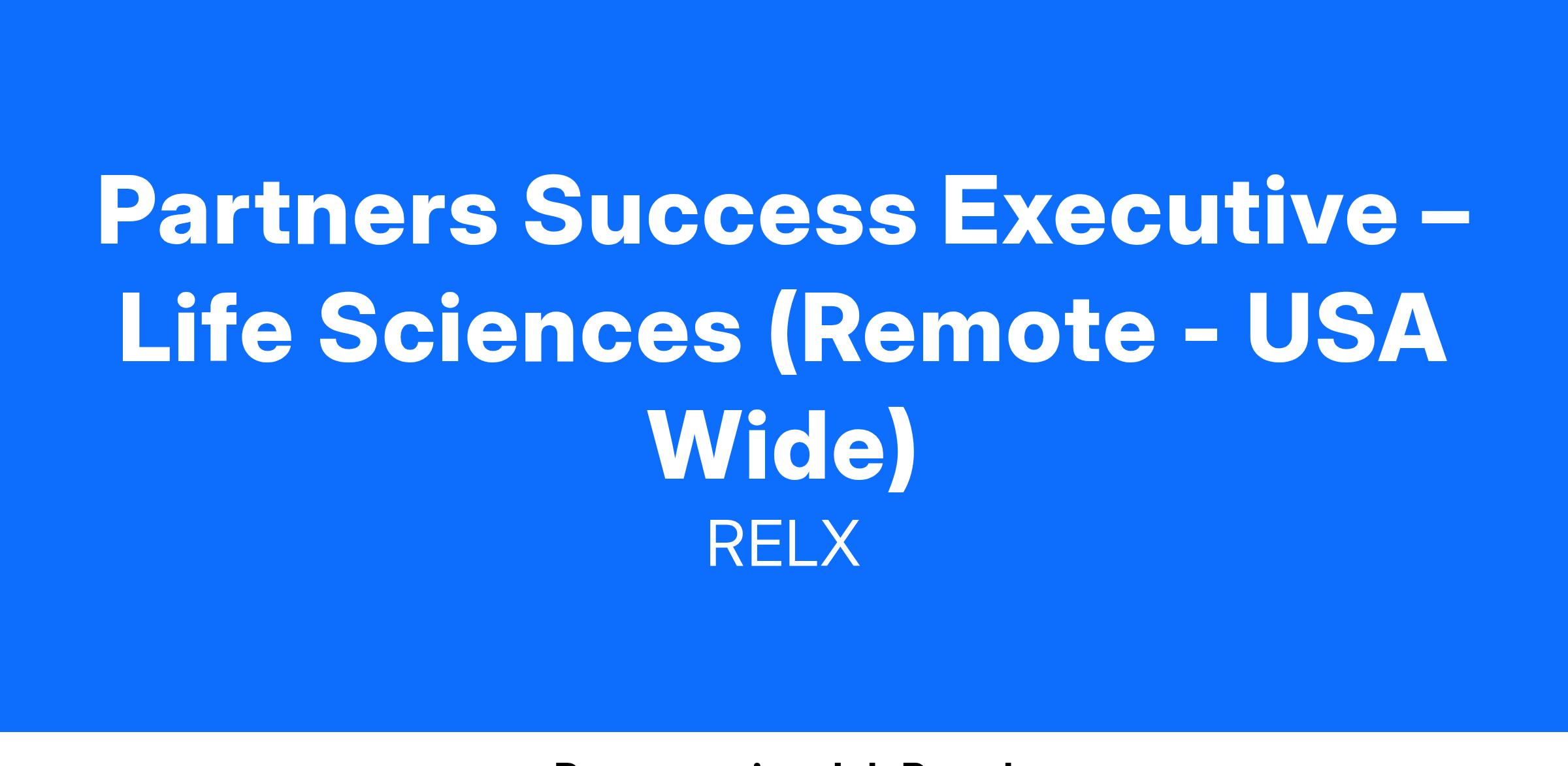 We are seeking a dedicated and driven Partner Success Executive to join our team. The successful candidate will play a pivotal role in ensuring the successful execution of partnership agreements in the Life Sciences market, driving revenue through an assigned set of high-priority partners while managing current and prospective relationships. This individual will drive revenue through a designated set of high-priority partners while managing both current and prospective relationships. We are seeking a dedicated and driven Partners Success Executive to join our team.