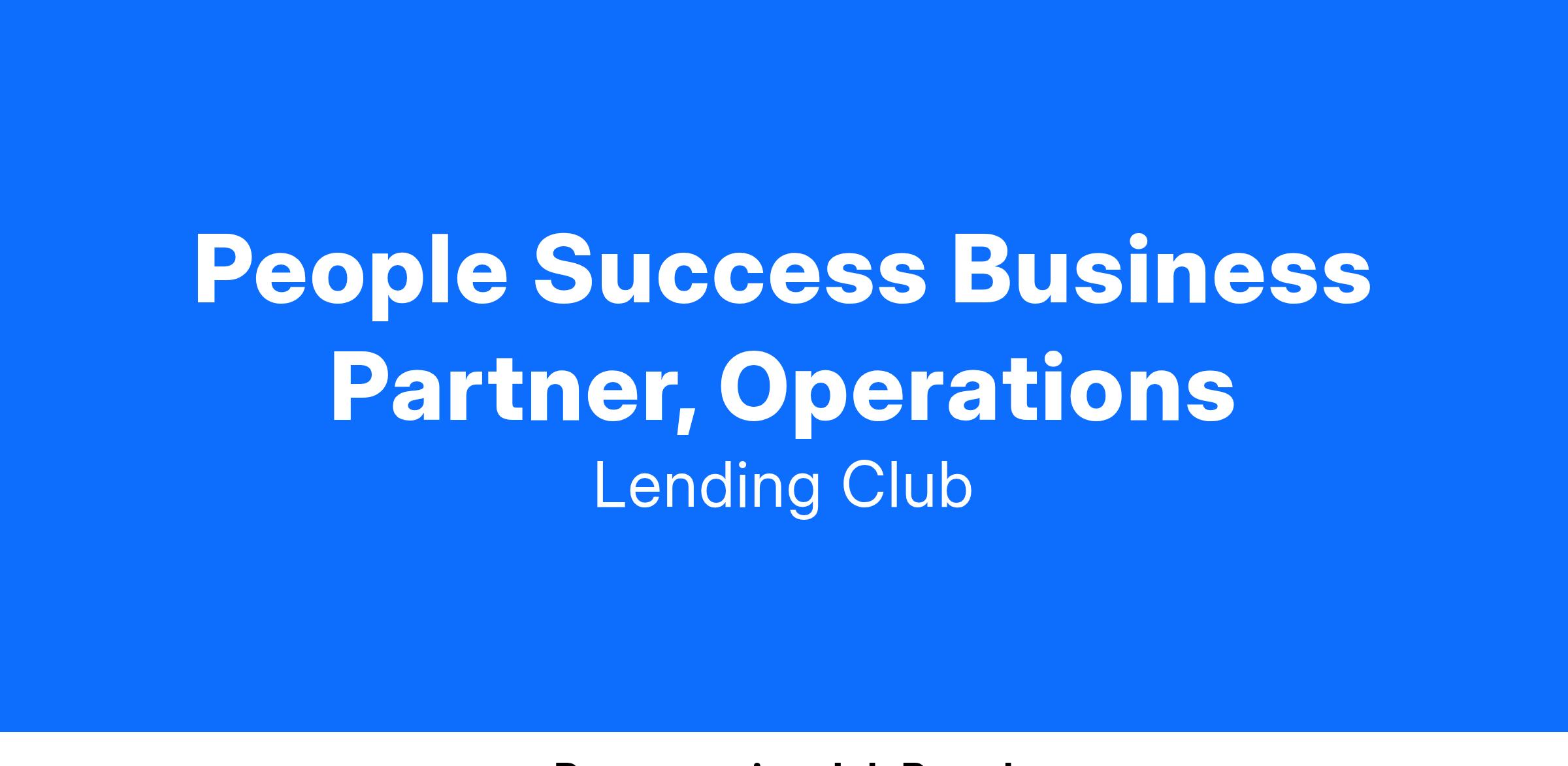 LendingClub is seeking a People Success (Human Resource) Business Partner who is responsible for providing forward-thinking, proactive HR partnership and support to the Operations teams. In this role, you will help create and execute our Operations and LC people strategy. You will partner with HR and employees to help educate, advise and influence leaders and employees on issues including retention and engagement, manager and team development, compensation planning, onboarding, training and development. You will leverage data to understand the changing needs of the organization so that you can help them in making better business decisions. The ideal candidate is interested in making a significant impact, excels in a fast paced, ever-changing environment, and is looking to work with a strong HR team.