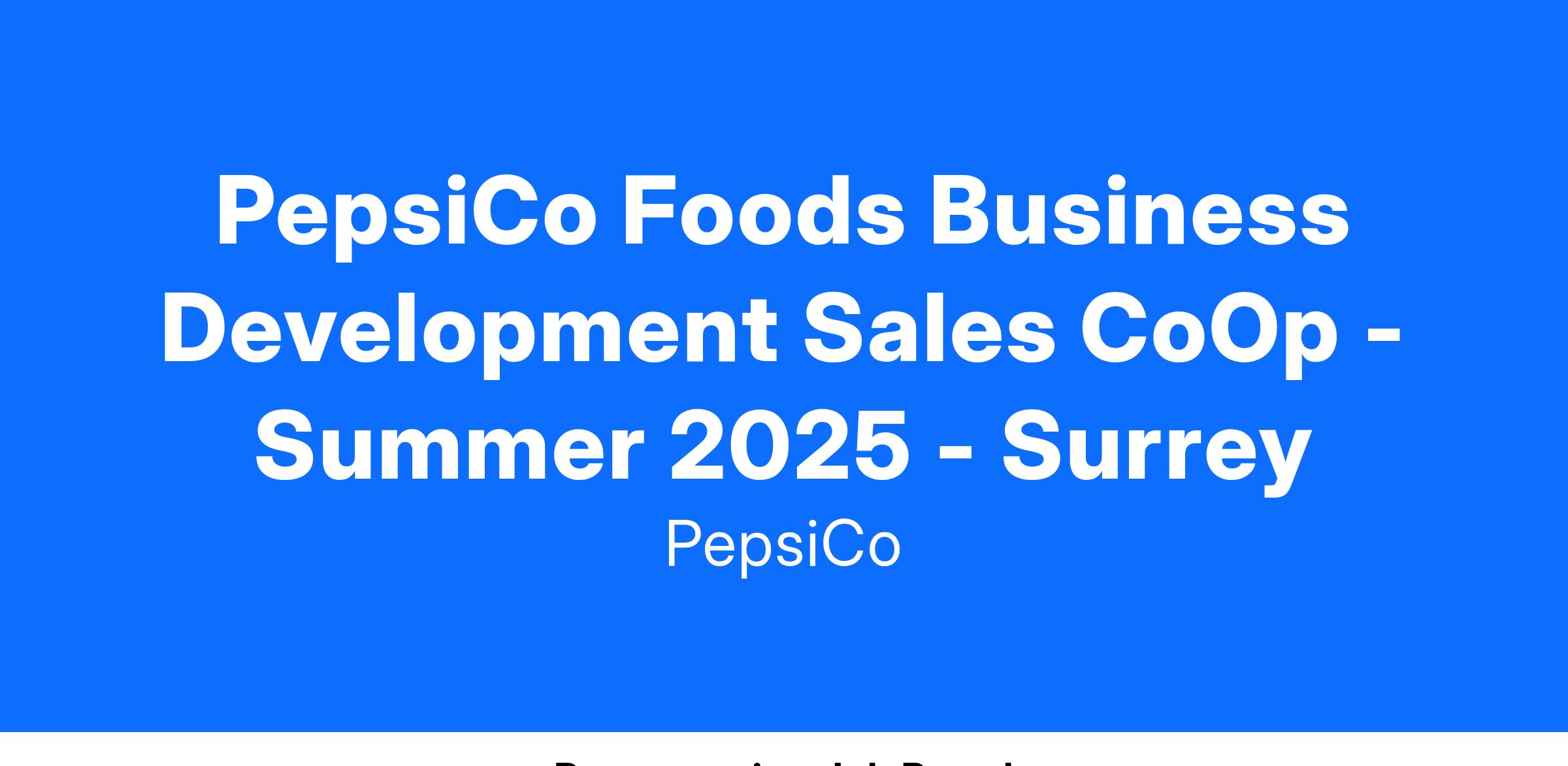 PepsiCo Foods Business Development Sales CoOp - Summer 2025 - Surrey