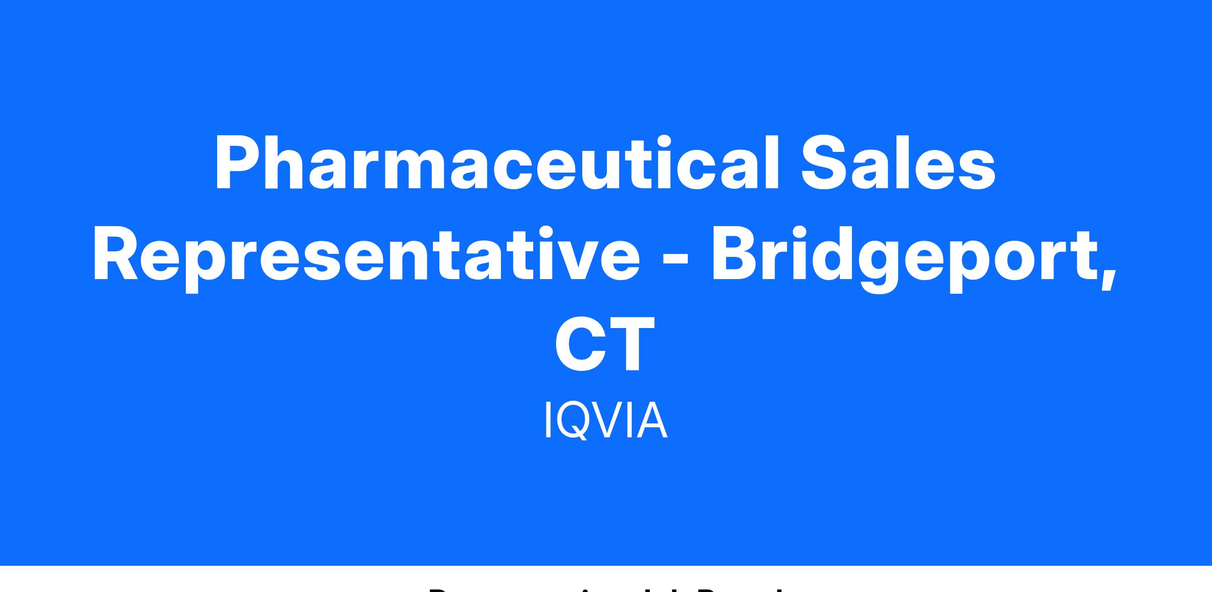 Pharmaceutical Sales Representative - Bridgeport, CT