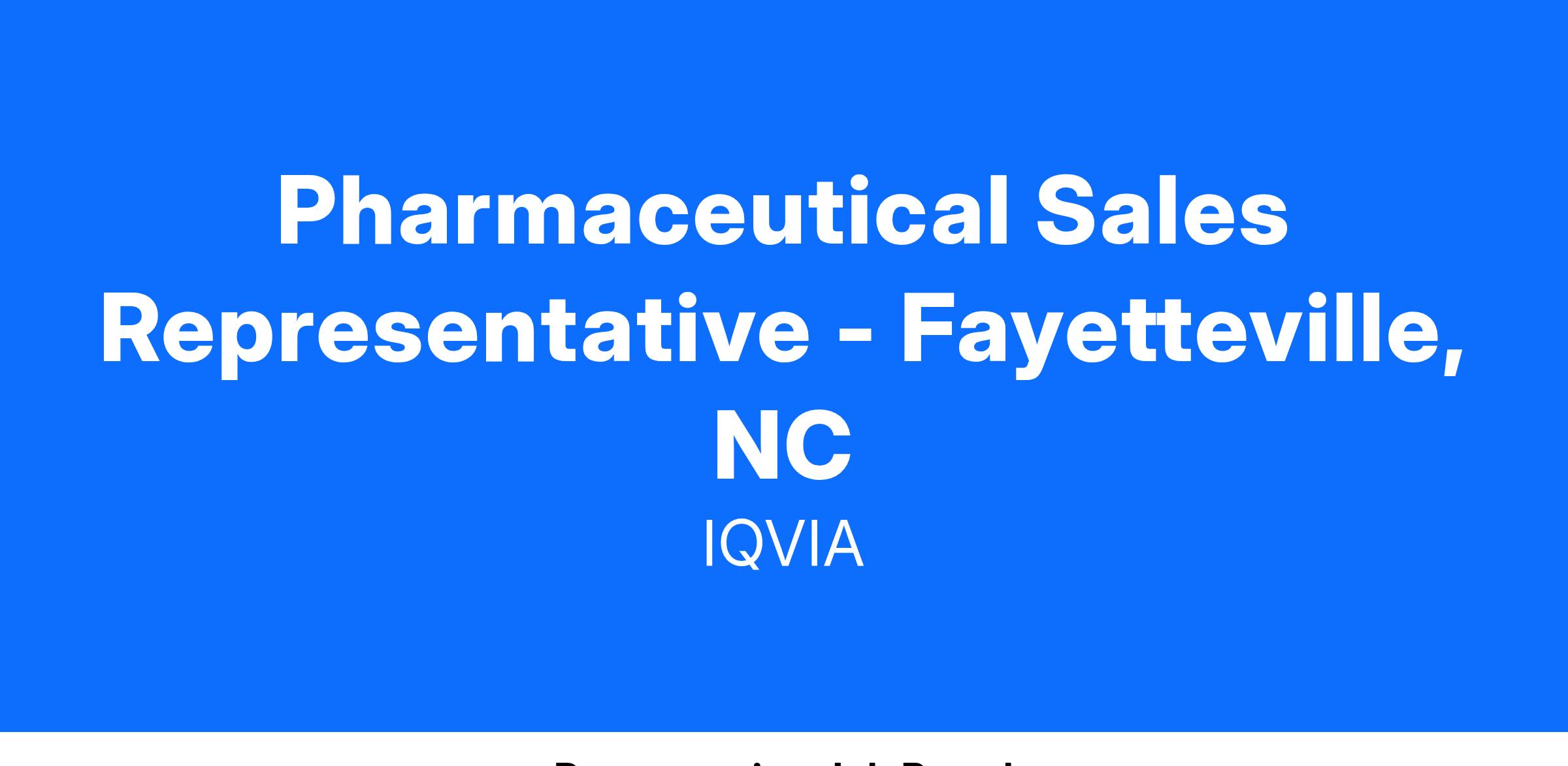 Pharmaceutical Sales Representative - Fayetteville, NC