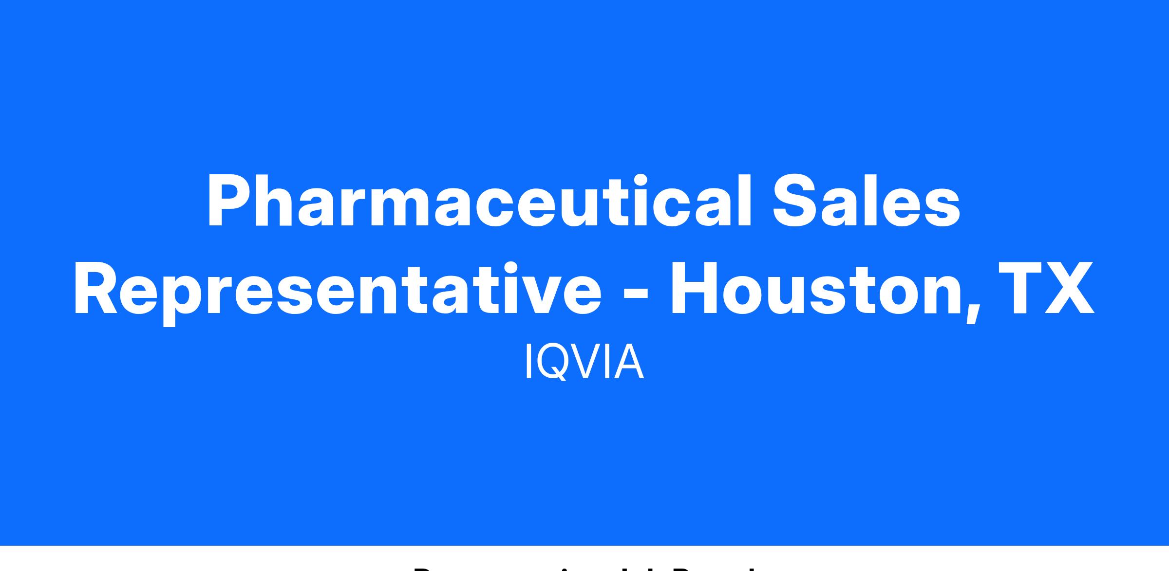 Pharmaceutical Sales Representative - Houston, TX