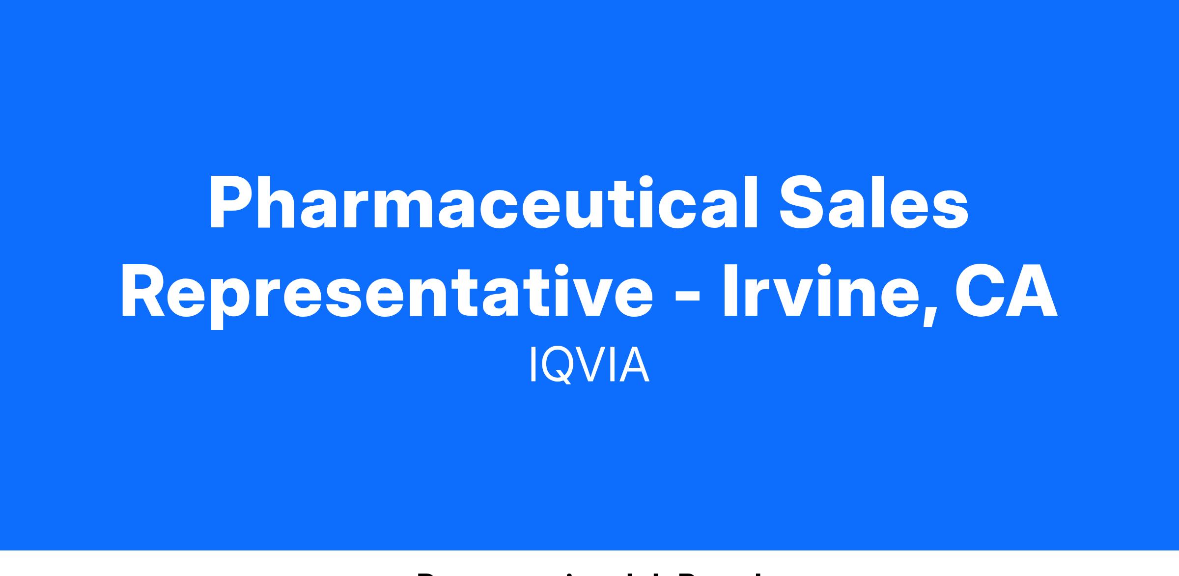 Pharmaceutical Sales Representative - Irvine, CA
